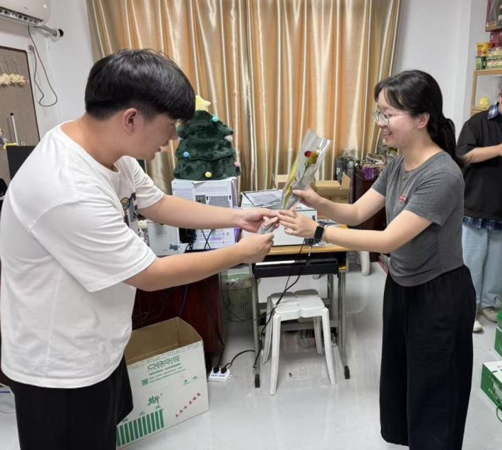 座谈会伊始,学院为全体教师精心准备了饱含心意的教师节礼品——新鲜饱满的葡萄、馥郁芬芳的鲜花、清爽解渴的饮品与手写祝福贺卡,一份份温馨的礼物承载着学院对教师们辛勤付出的认可与敬意,让现场洋溢着温暖祥和的节日氛围。