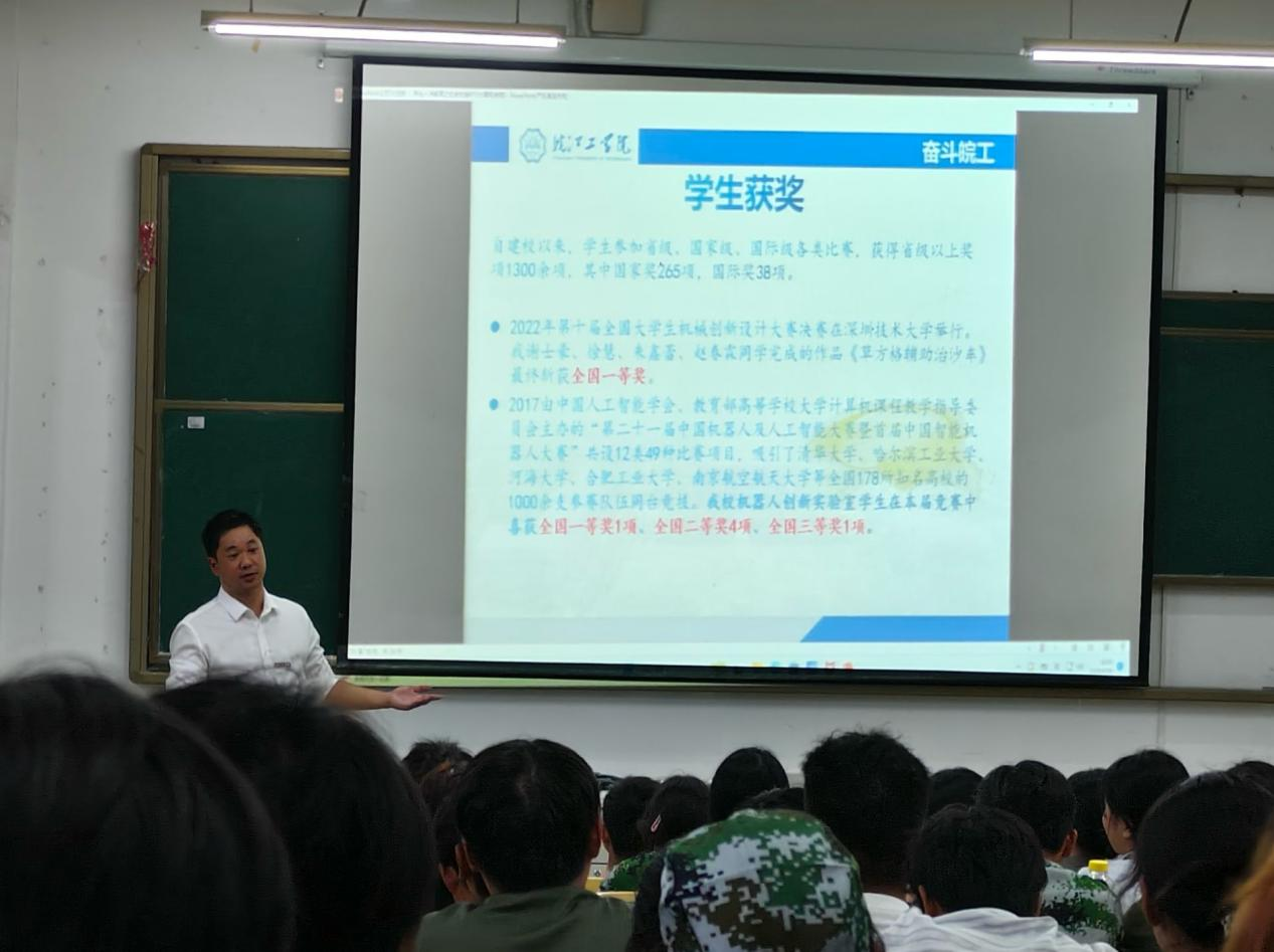 在讲到计算机与人工智能学院的发展时,院长胡徐胜自豪地介绍了学院雄厚的师资力量与优异的育人成果。学院现有教授、副教授及博士教师多人,主持国家级、省部级科研项目数十项,学生在全国大学生机械创新设计大赛、中国机器人及人工智能大赛等赛事中屡获佳绩,展现了皖工学子的创新实力与拼搏精神。
