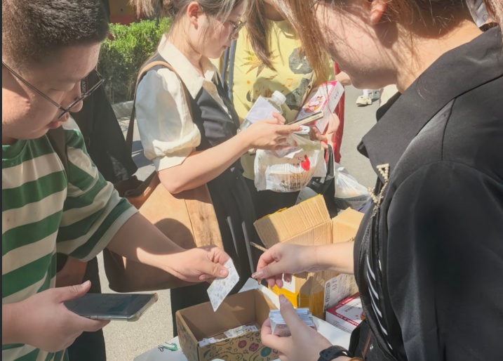 在充满成就感的毛线创作后,活动进入了激动人心的刮刮乐抽奖环节。桌面上摆满了琳琅满目的奖品:印有学院标识的帆布包、实用文具、定制钥匙扣,以及清凉的手持风扇。这些丰富奖品瞬间点燃现场,阵阵欢笑随着刮开奖券的动作不断漾开。更显用心的是,活动特意设置了PU学分奖励机制。工作人员耐心为每位同学完成签到登记,将“温柔治愈的心理关怀”与“助力成长的学分激励”巧妙编织在一起,让每一位参与的同学既在创作与互动中舒缓了心绪,又收获了成长的动力,使这场校园活动成为青春成长中一抹温暖的印记。