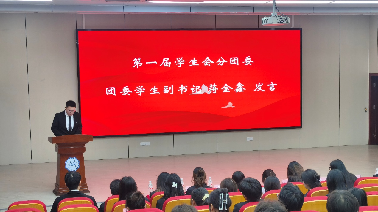 随后,第一届分团委学生副书记蒋金鑫就上一年度分团委工作作总结报告。他系统汇报了团组织建设、团员发展、实践育人及评优表彰等重点工作的开展情况,在肯定成绩的同时,也客观剖析了当前存在的不足与改进方向。蒋金鑫进一步明确,未来学院分团委将深入学习贯彻党的二十届四中全会精神,持续推进组织改革与创新,团结带领全院青年学子坚定理想信念、练就过硬本领,为推进中国式现代化建设贡献青春智慧与力量。