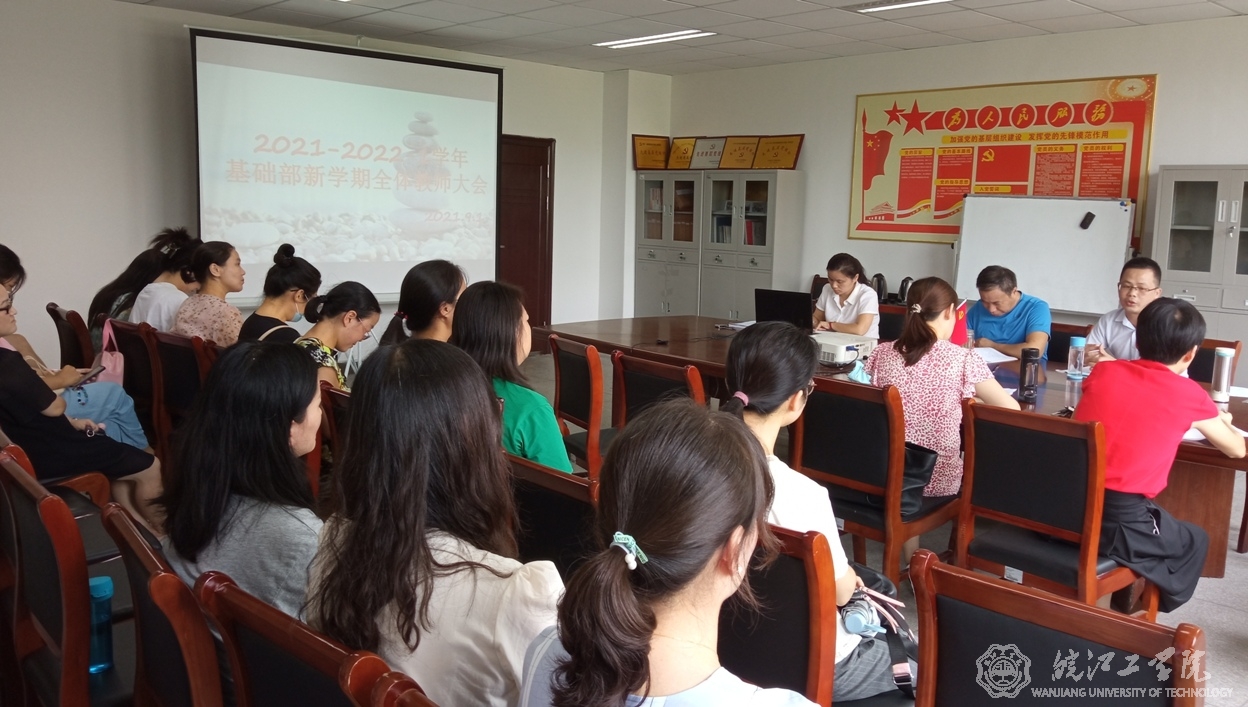 新学期伊始,beat365基础部于9月1日下午在E218召开新学期全体教师大会,党总支书记宋洪生、副主任吴云标及全体专职教师参加会议,会议由吴云标主持。