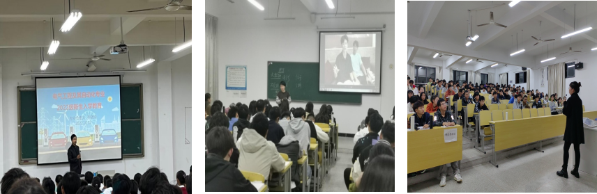 胡徐胜、纪萍、陈玲为电气工程及其自动化、通信工程、自动化的新生进行讲解