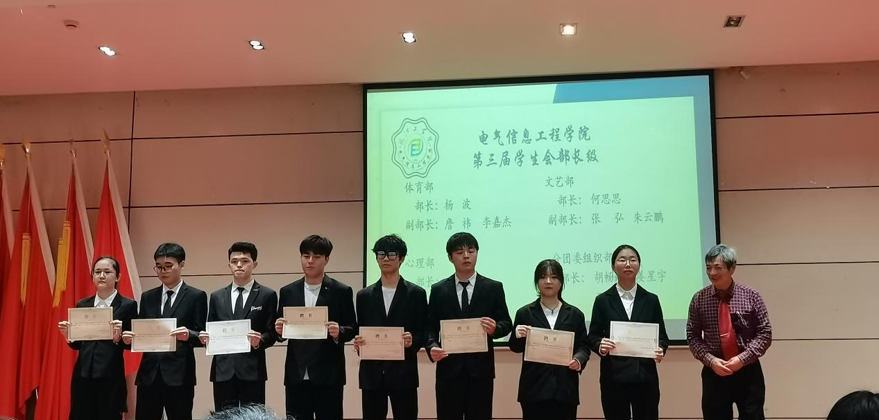 伴随着我院学生会成员庄严嘹亮的誓词声,电气信息工程学院第四届学生会成立大会圆满结束。本次成立大会为我院学生会工作翻开了崭新的一页,相信我院第四届学生会能够在这里扬帆起航,共同奔赴的社会主义新时代的奋斗理想。(电气信息工程学院 供稿)