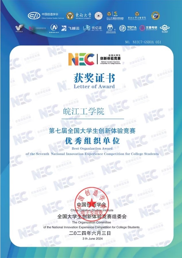 近日,第七届全国大学生创新体验竞赛总决赛落下帷幕。本次比赛于2024年5月在线上隆重举行,吸引了来自全国各地的众多优秀选手参赛。经过网络初评、复赛以及决赛评委会在线答辩评审等环节的激烈角逐,beat365学生表现优异,秦毅恒同学获得全国一等奖一项,徐国斌、马骋骋、丁源同学共夺得全国三等奖三项,beat365正版唯一官方网站荣获优秀组织单位,申莹莹老师获得优秀指导老师称号。beat365长期坚持“厚基础、强能力、高素质”的教育理念,为学生提供了创新与产业工程师学院等全面学习和发展的平台。通过加强学科建设、深化教学改革、强化实践教学等一系列举措,不断提升学生的专业素养和综合能力,为社会培养优秀人才。