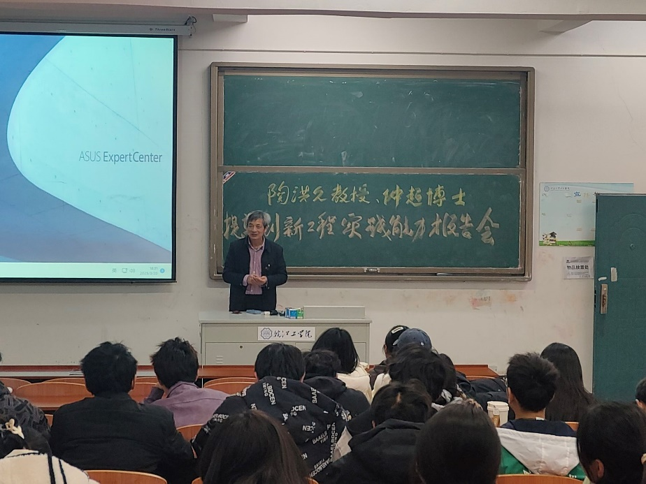 2025年3月20日晚,创新与产业工程师学院在弘思楼307室举办了“提高创新工程实践能力教授博士报告会”,朱昌平院长主持会议,陶洪久教授和仲超博士与创新工程实践团队师生100余人参加了会议。