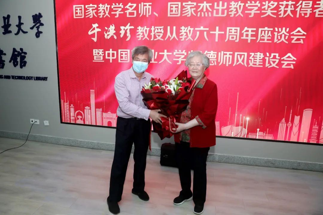 于洪珍教授简要回顾了自己的从教经历。她说,自毕业从教起,她将个人命运与矿大教育事业、煤矿事业紧紧连在一起,将青春和热血奉献给了热爱的矿业高等教育事业,将爱毫无保留地倾注给了学生。她向党和学校的长期培养关心、恩师的教导和团队的支持表示感谢。她讲述了自己怀着敬畏之心认真备好每一堂课、以大爱情怀和巧妙方法帮助学习困难学生树立自信、创造条件启发学生走上科研道路、手把手教导为学生成才奠定基础的故事。回顾六十年从教经历,她勉励广大教师忠诚党的教育事业,坚守初心、爱岗敬业,坚持为党育人、为国育才,树立先进的教育教学理念,具备符合时代要求的教学思想,引导学生树立正确世界观、人生观、价值观,促进学生想学、会学、善学,使学生成为可担时代重任的合格人才。
