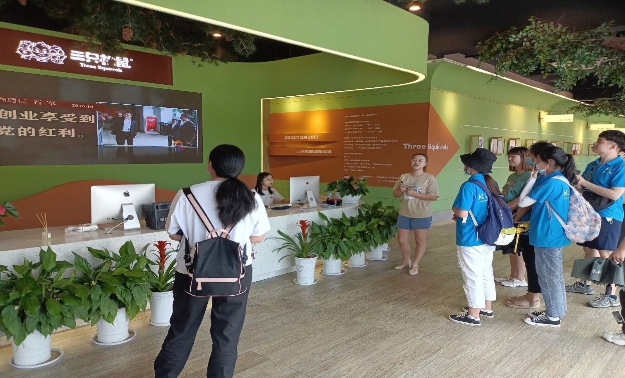随着改革开放力度的不断深化,国家如今更加大力支持和发展高新技术,推动产业结构的多元化,鼓励企业创新产品、延长产业链、发展数字化能力。为了去体会改革开放后,互联网技术与产品的结合,双创学院代表队实践活动的第一站安排在了安徽省芜湖市的三只松鼠总部。公司负责人为团队详细讲解了三只松鼠发展经历,并介绍了如何抓住时代发展机遇的体会。