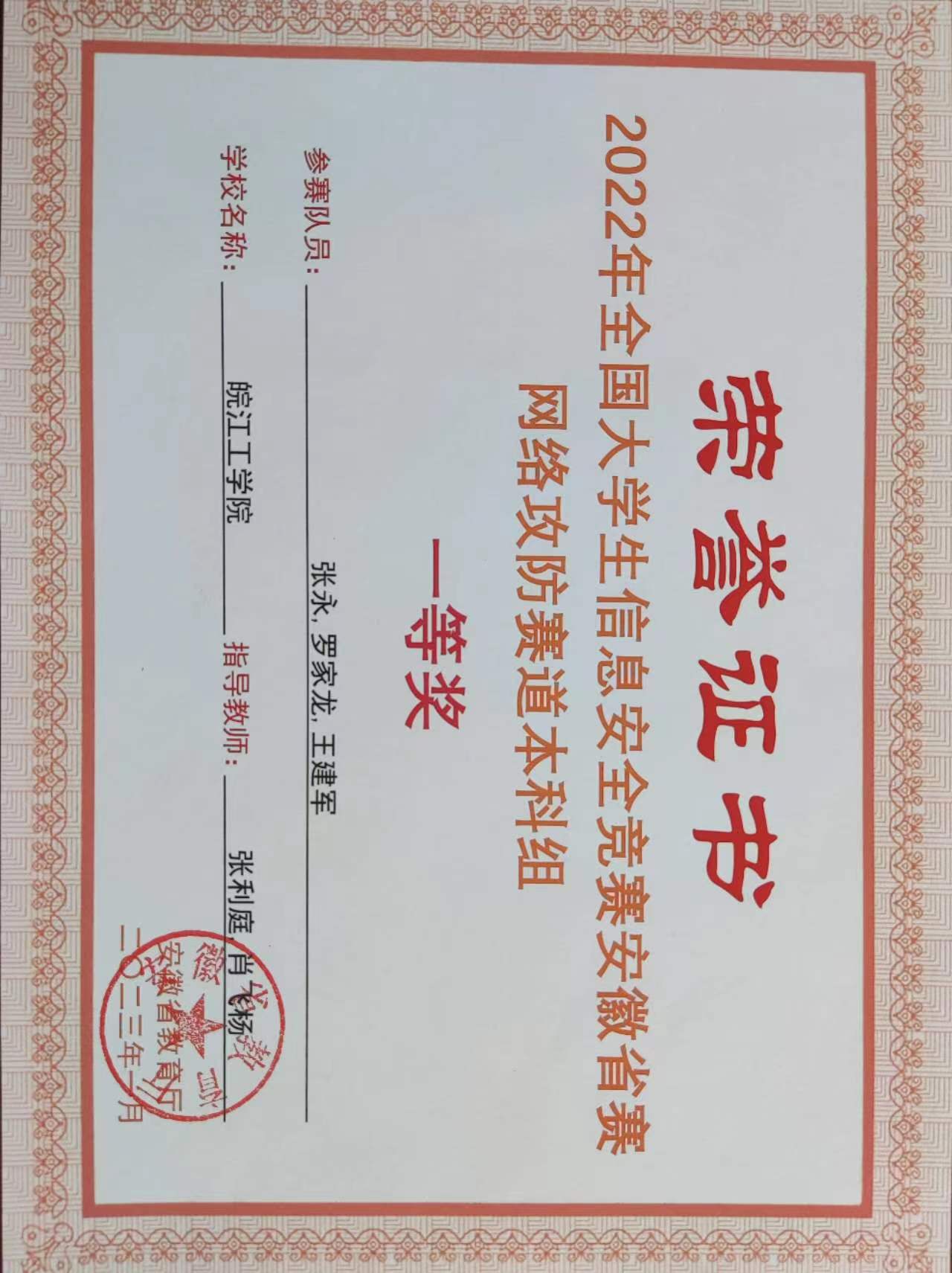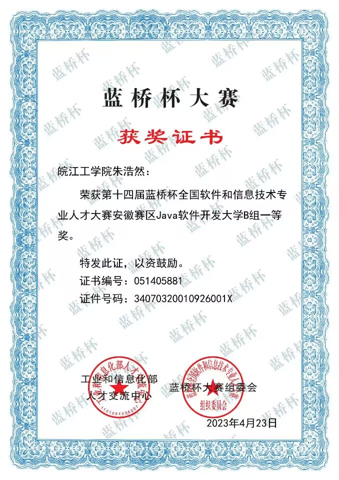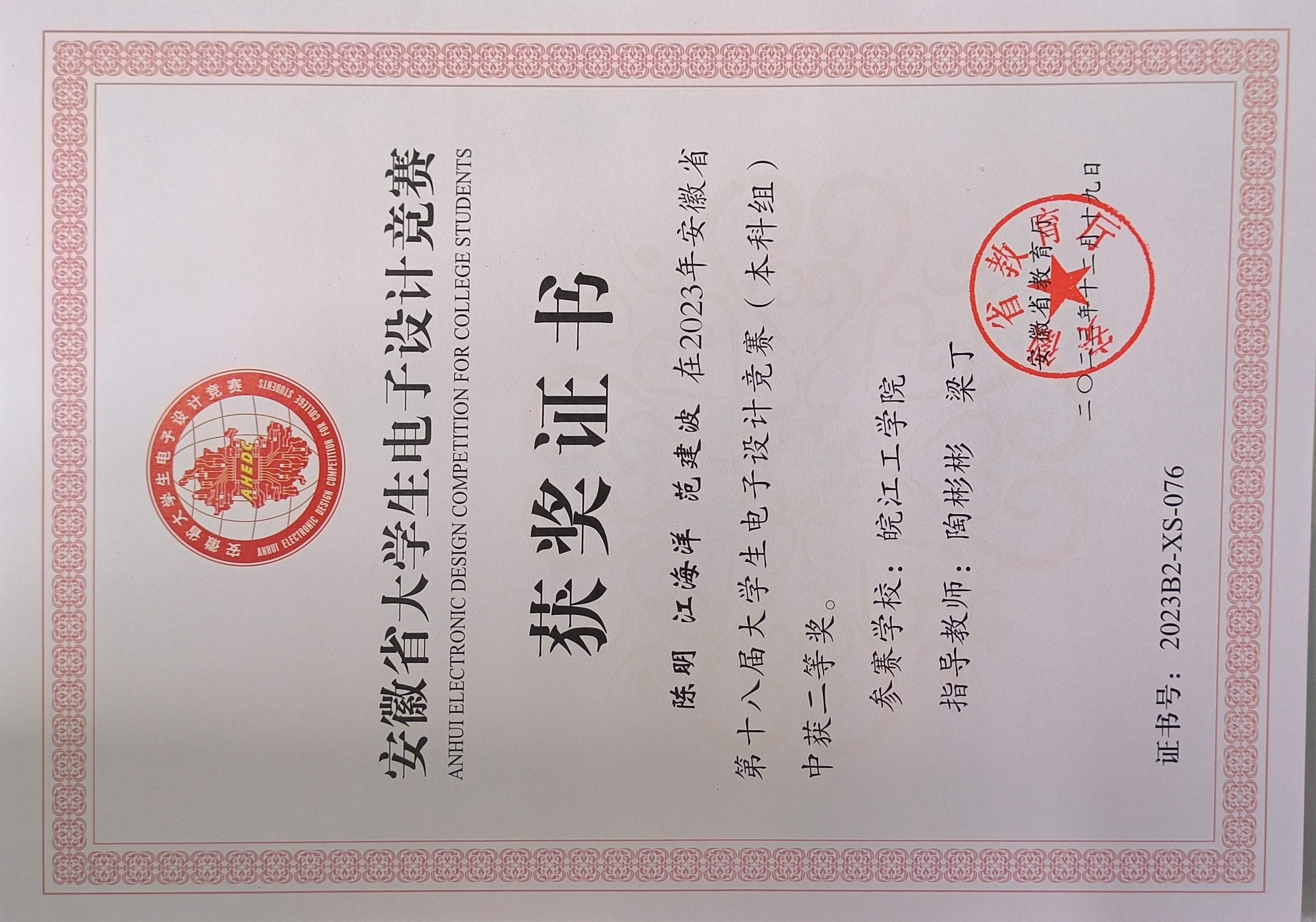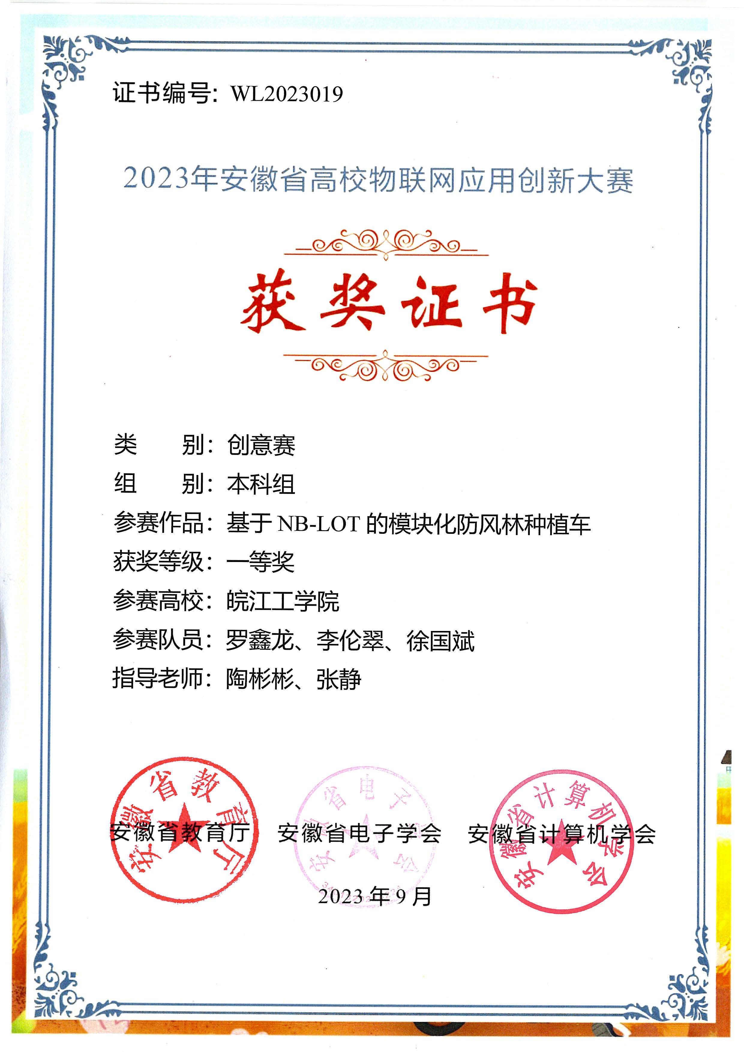 2023年学生省级以上获奖证书