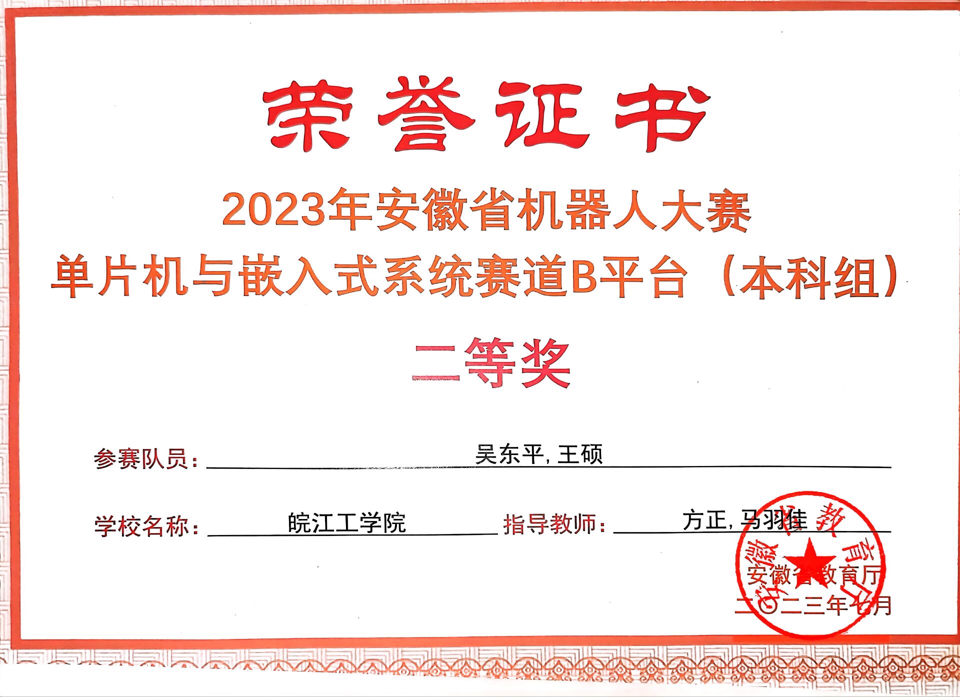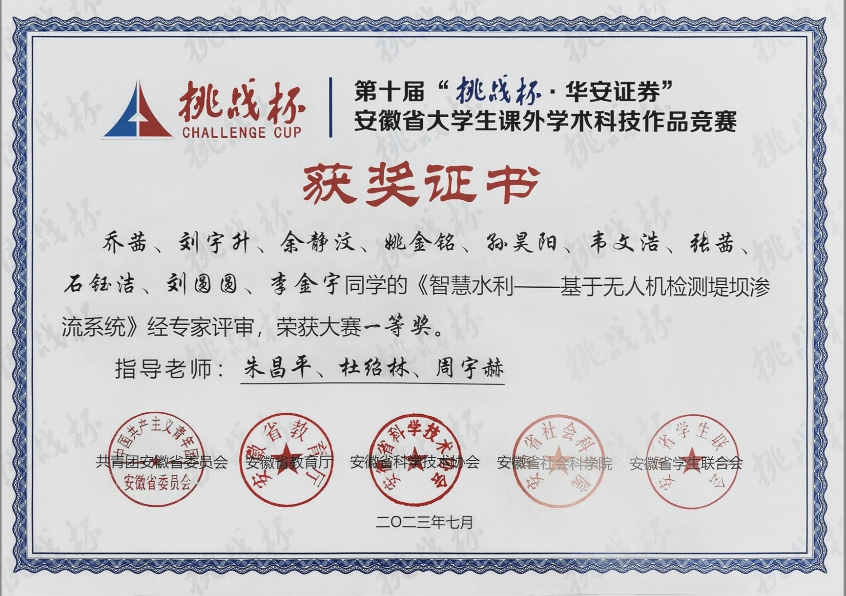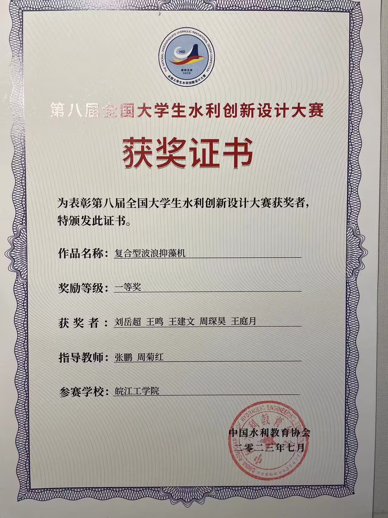 2023年学生省级以上获奖证书