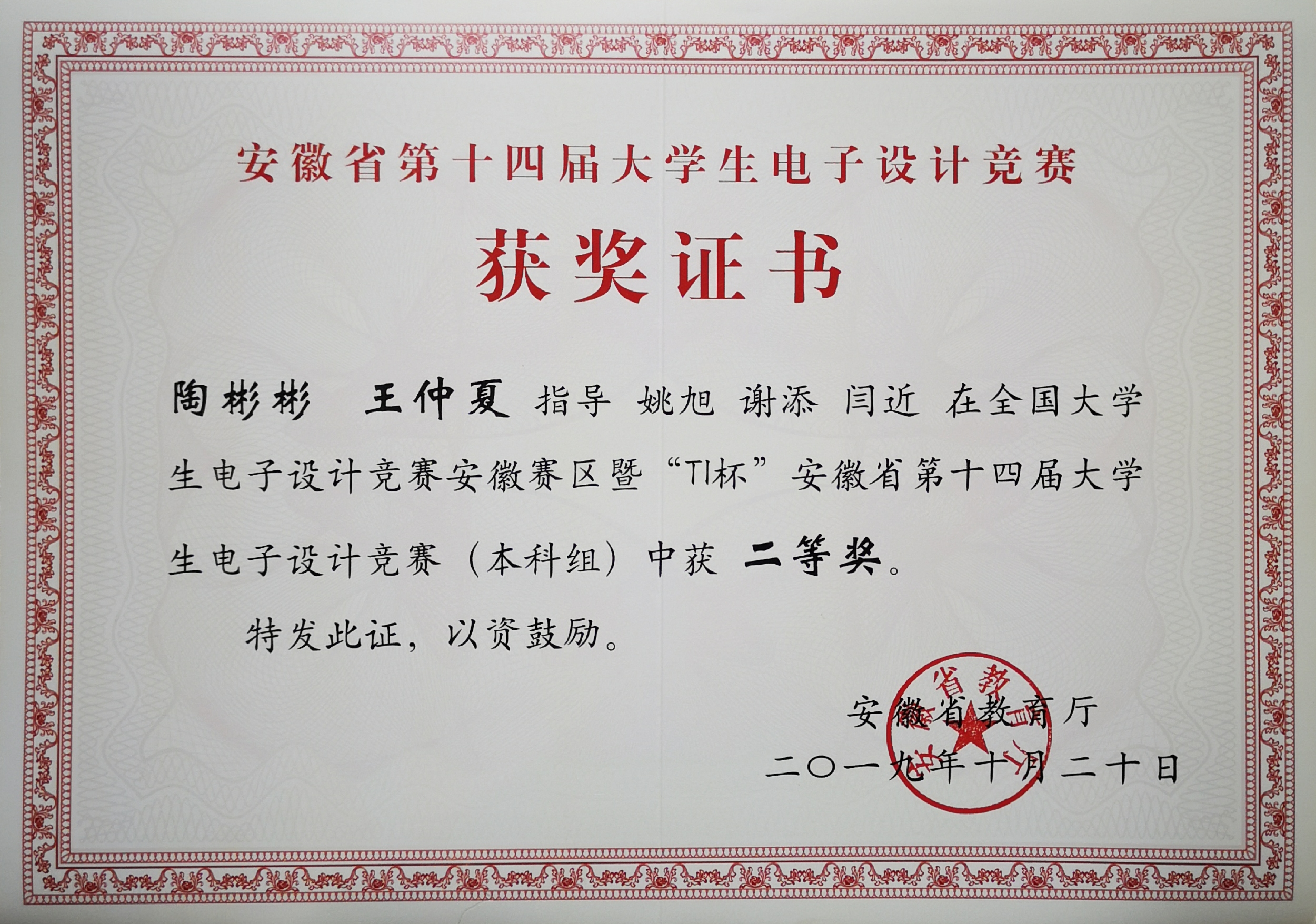 学生授权发明专利等证书