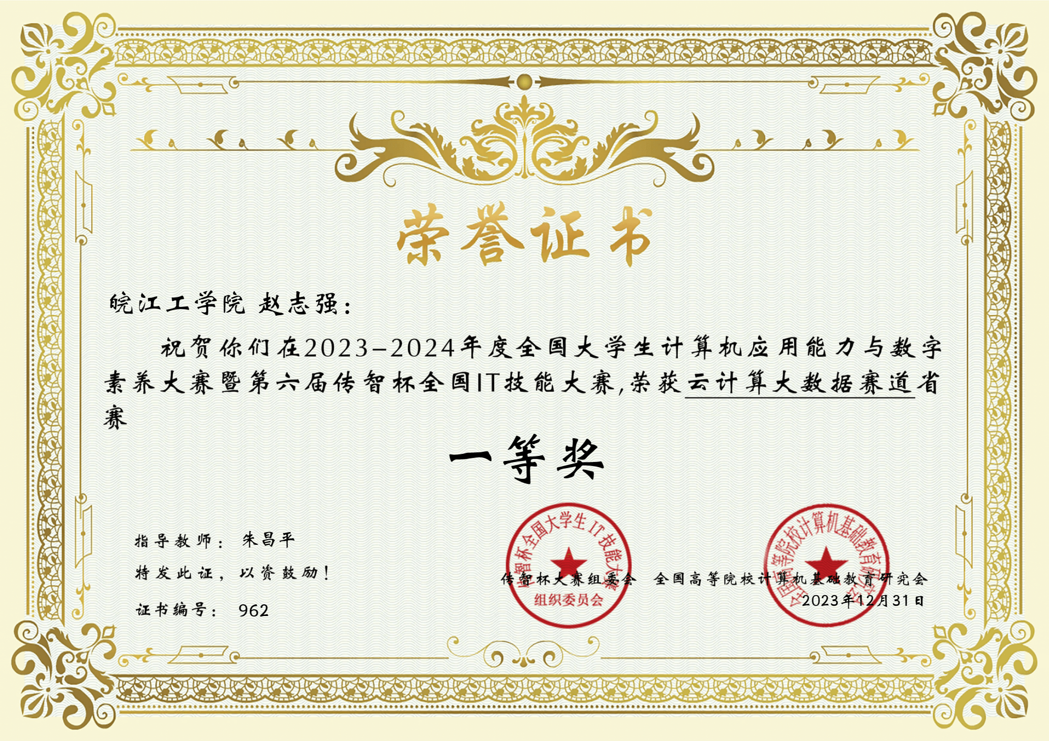 2024年学生获奖证书