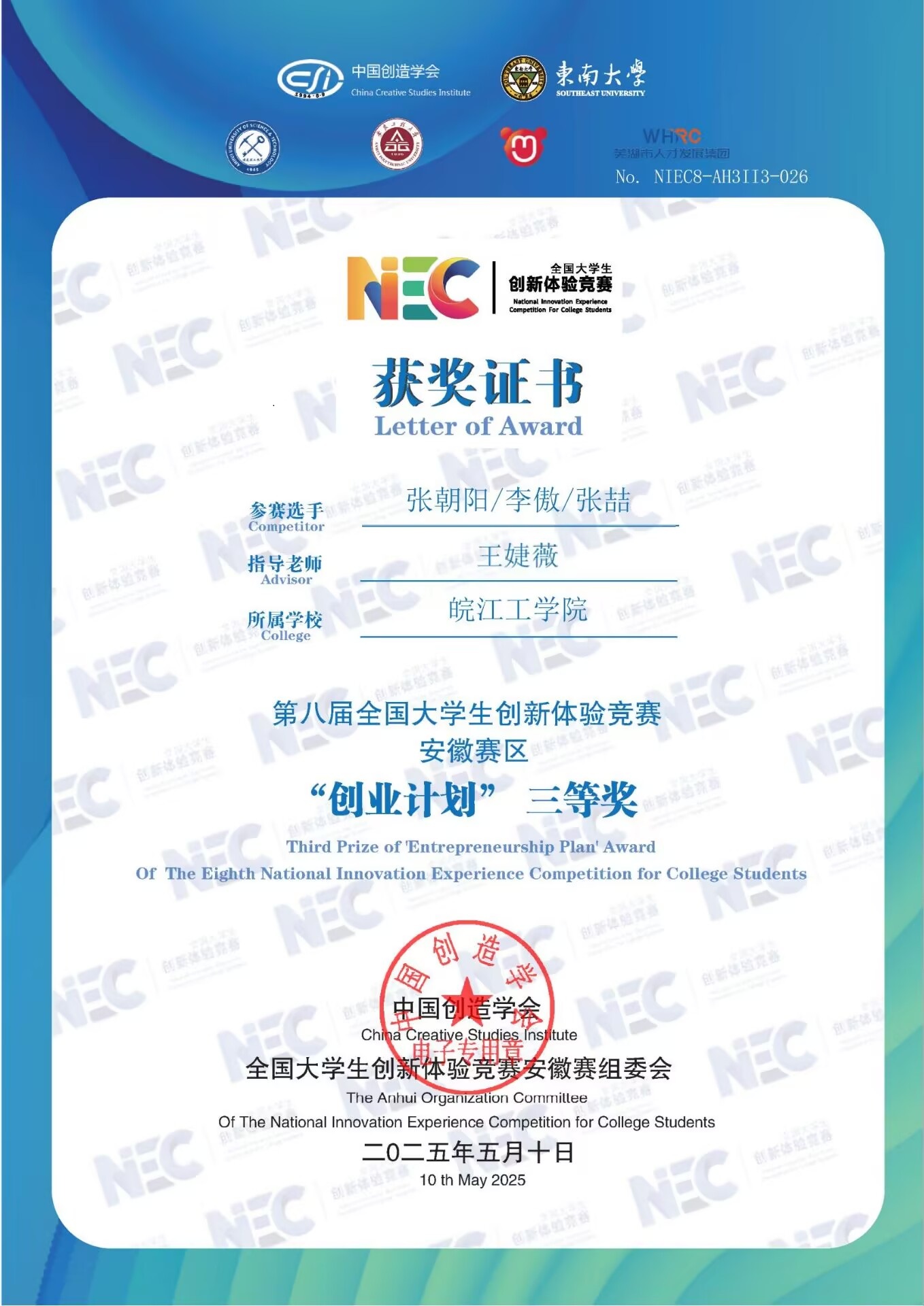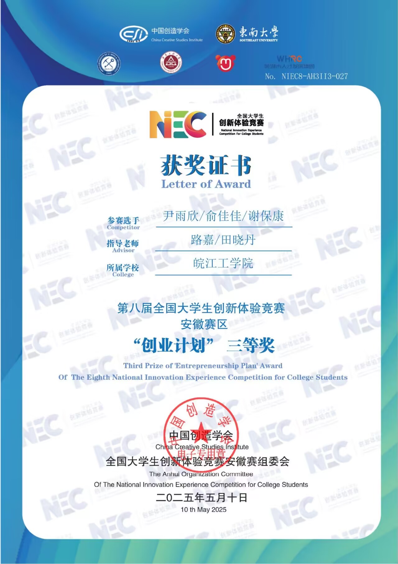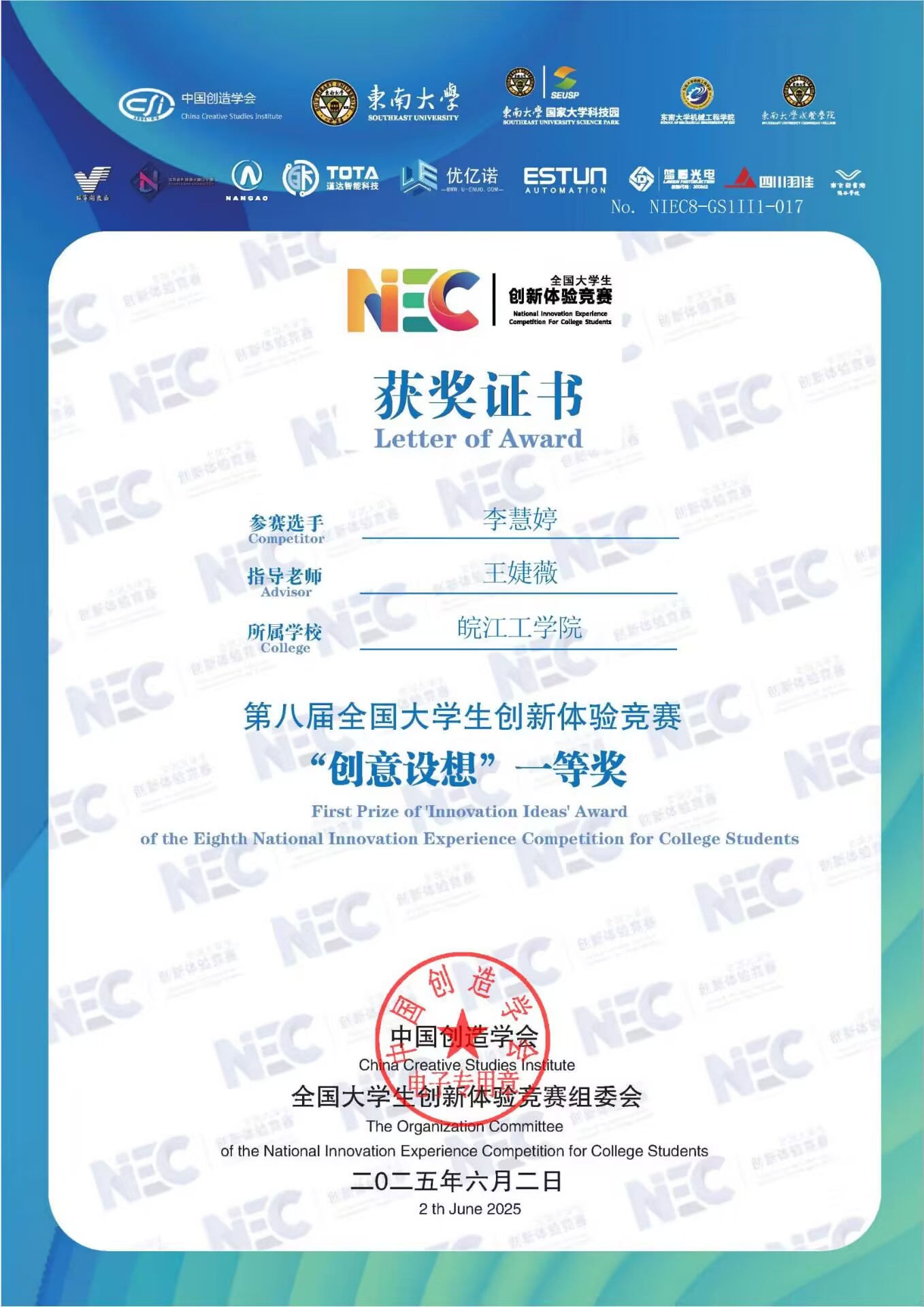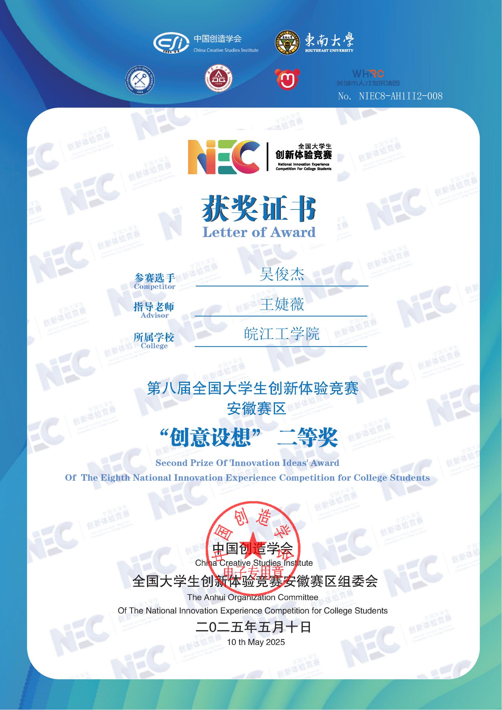 2025年学生获奖证书