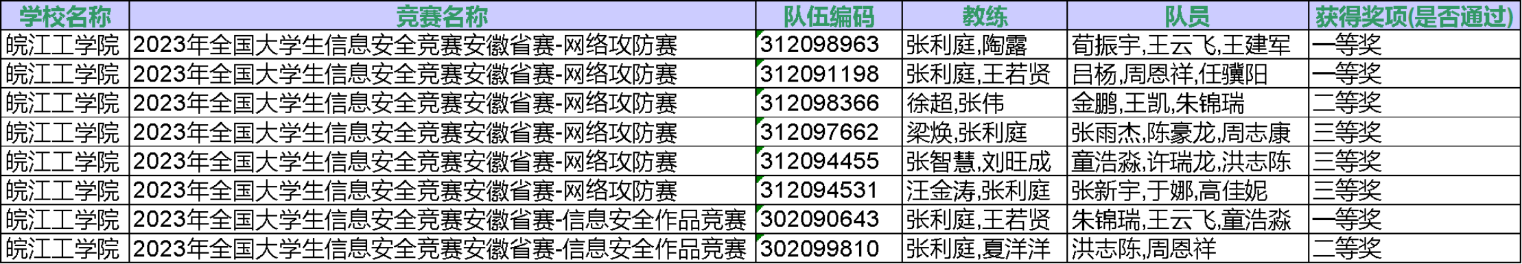 近期,2023年全国大学生信息安全竞赛安徽省赛圆满结束。beat365电气信息工程学院的学生在大赛中再创佳绩,获得创新实践能力赛道网络攻防赛一等奖2项、二等奖1项、三等奖3项,获得信息安全作品竞赛一等奖1项、二等奖1项。