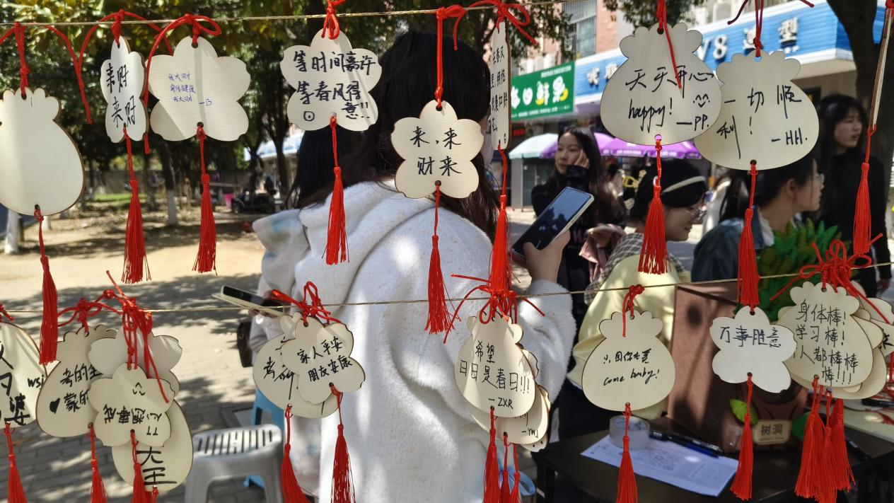 通过这个活动,让大家在轻松自然的氛围中,暂时放下学习和生活的压力,好好放松一下心情。此外,这次活动通过挂卡牌和抽签,大家可以分享自己的心情、愿望,或者从别人的文字中感受到温暖和力量,拉近彼此的距离,引导同学以乐观的心态面对生活中的困难。