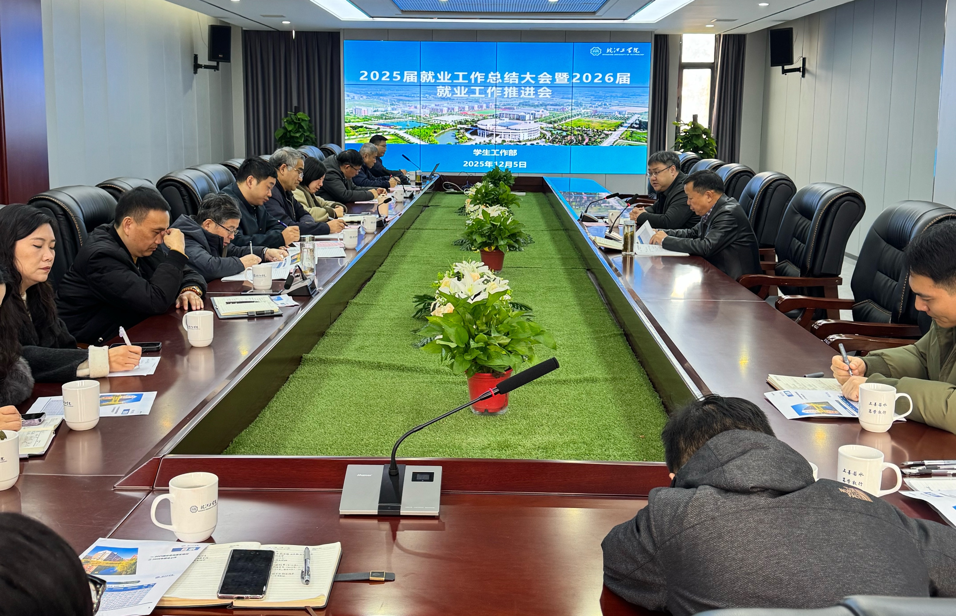 凝心聚力促就业,谋篇布局启新程。为深入学习贯彻党的二十届四中全会精神及 2026 届全国普通高校毕业生就业创业工作会议部署,全面复盘 2025 届就业工作成效、梳理经验做法,精准锚定 2026 届毕业生就业工作重点任务,2025 年 12 月 5 日(星期五)上午 9 时在行政楼 417 会议室召开 2025 届就业工作总结暨 2026 届就业工作推进会。副校长侯进元,副校长王志、学生工作部副部长汪朱华,各二级学院党总支书记、副书记,就业指导中心相关工作人员参加会议,侯进元主持会议。