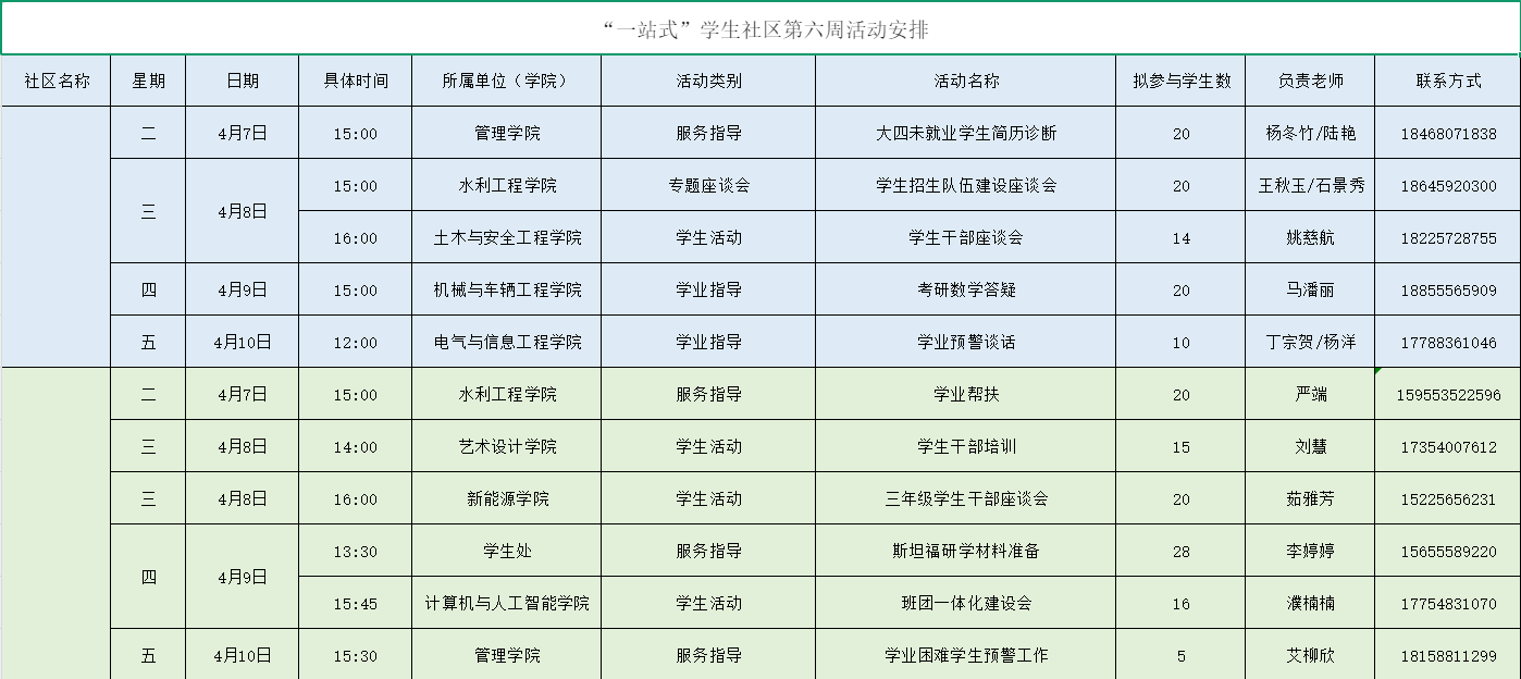 “一站式”学生社区第六周活动安排