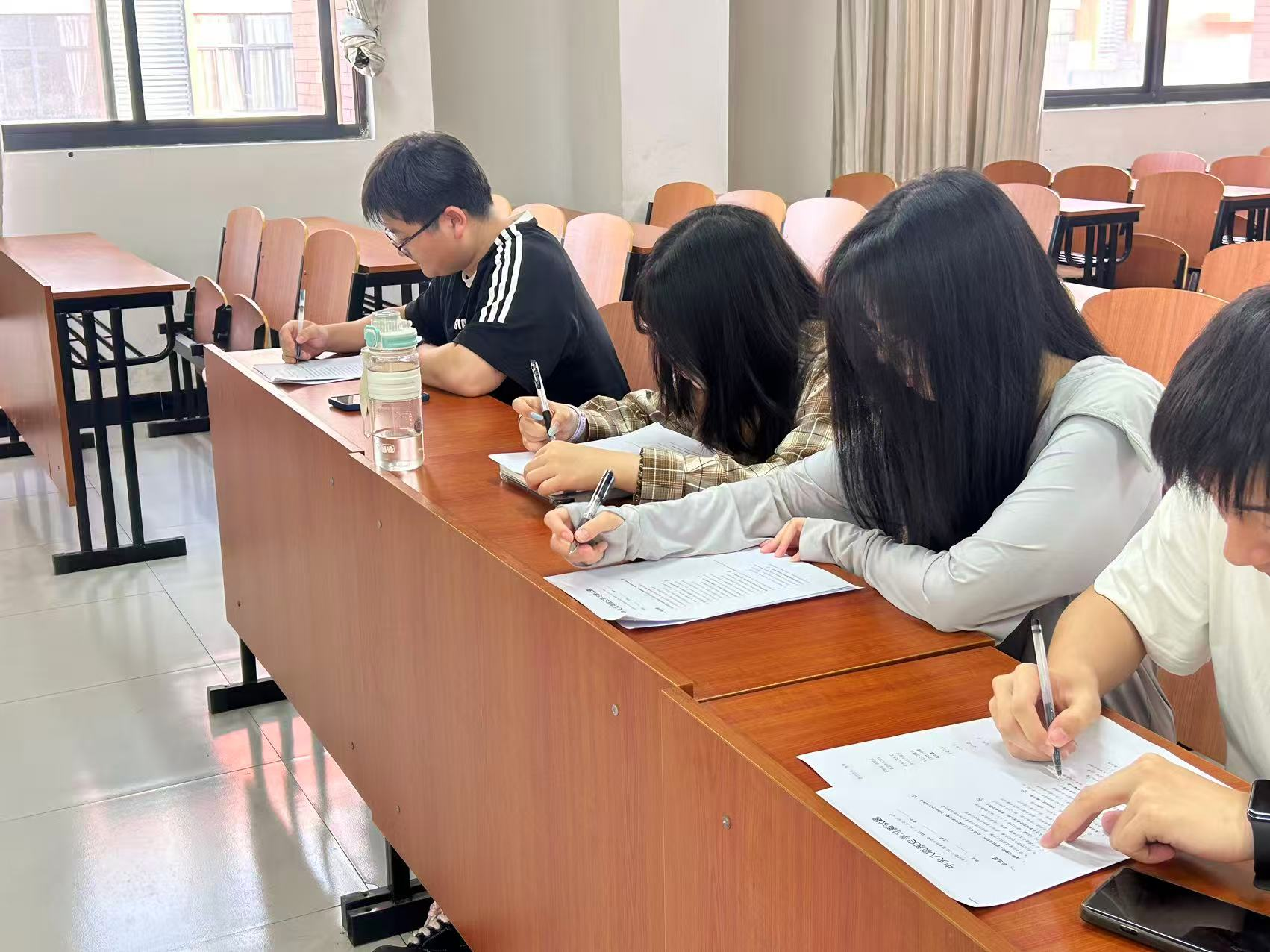 在学习环节,同学们齐聚教室,认真观看党史相关影像资料。同学们沉浸其中,不时记录要点,深刻感悟党的伟大成就与历史经验。