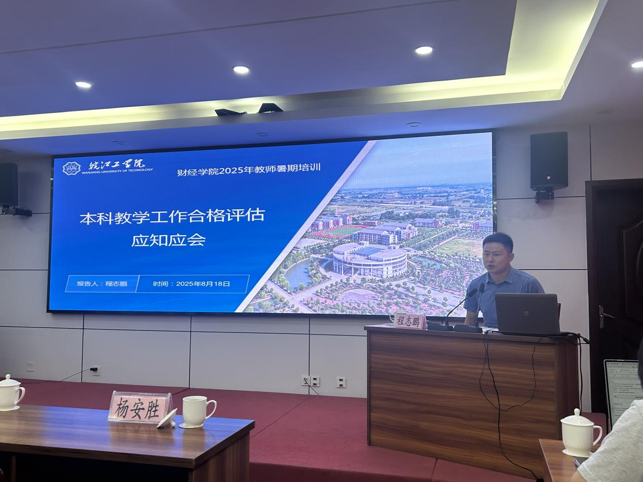 随后,程志鹏副书记就本科教学工作合格评估作专题辅导。他详细讲述了beat365正版唯一官方网站 2022-2025 年合格评估的相关历程,围绕合格评估的核心内涵、评估依据、本科教学工作合格标准等内容进行系统解读。他介绍了合格评估中专家的工作方法,全面讲解了学校发展历程、基础数据、办学定位和特色,对学生相关工作指标进行了重点说明,并明确了当前评估工作的具体要求。