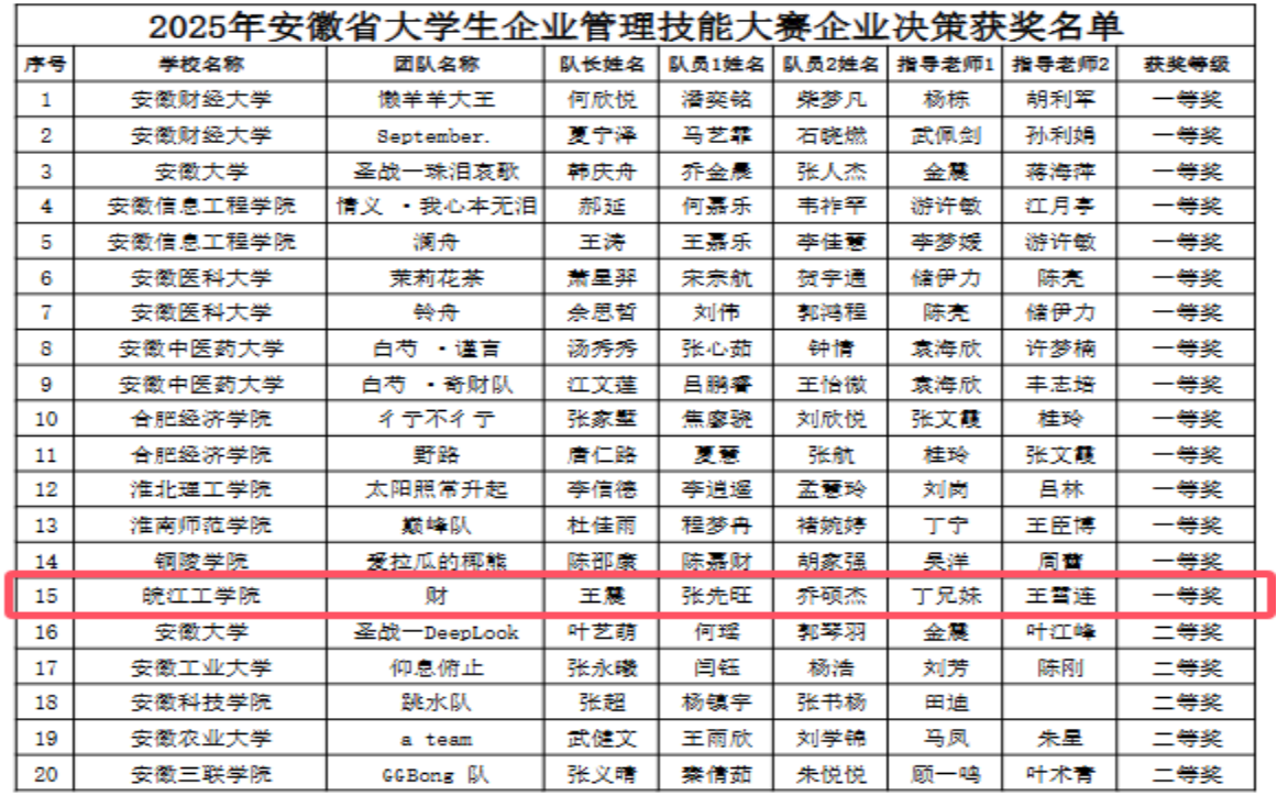 喜报:财经学子在2025年安徽省大学生企业管理技能大赛中喜获佳绩