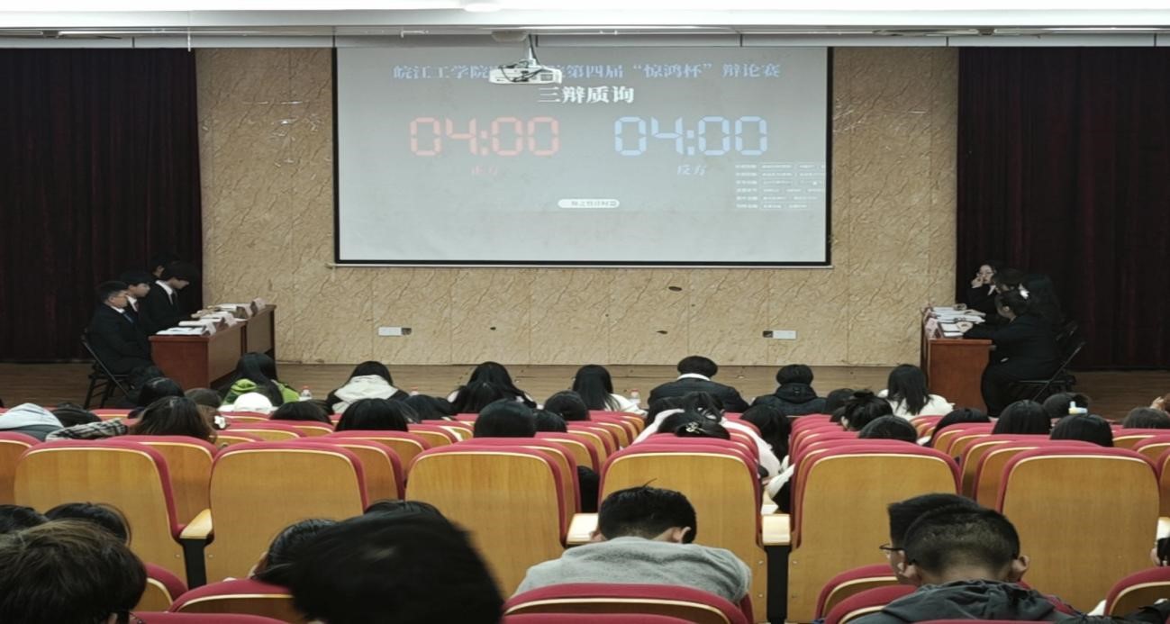 “飞扬青春,与辩为友”。财经学院第四届“惊鸿杯”辩论赛决赛于2023年11月26日下午在郑蒲港校区的图书馆报告厅举行。本次辩论赛的评委有办公室副主任陈露露、团务办主任游馨瑜、学创部部长郑丹、文宣办部长余扬、宣传部副部长吴硕颖、大艺团团长查道鸣、礼仪办副主任江雪儿、健康部部长刘少宏。