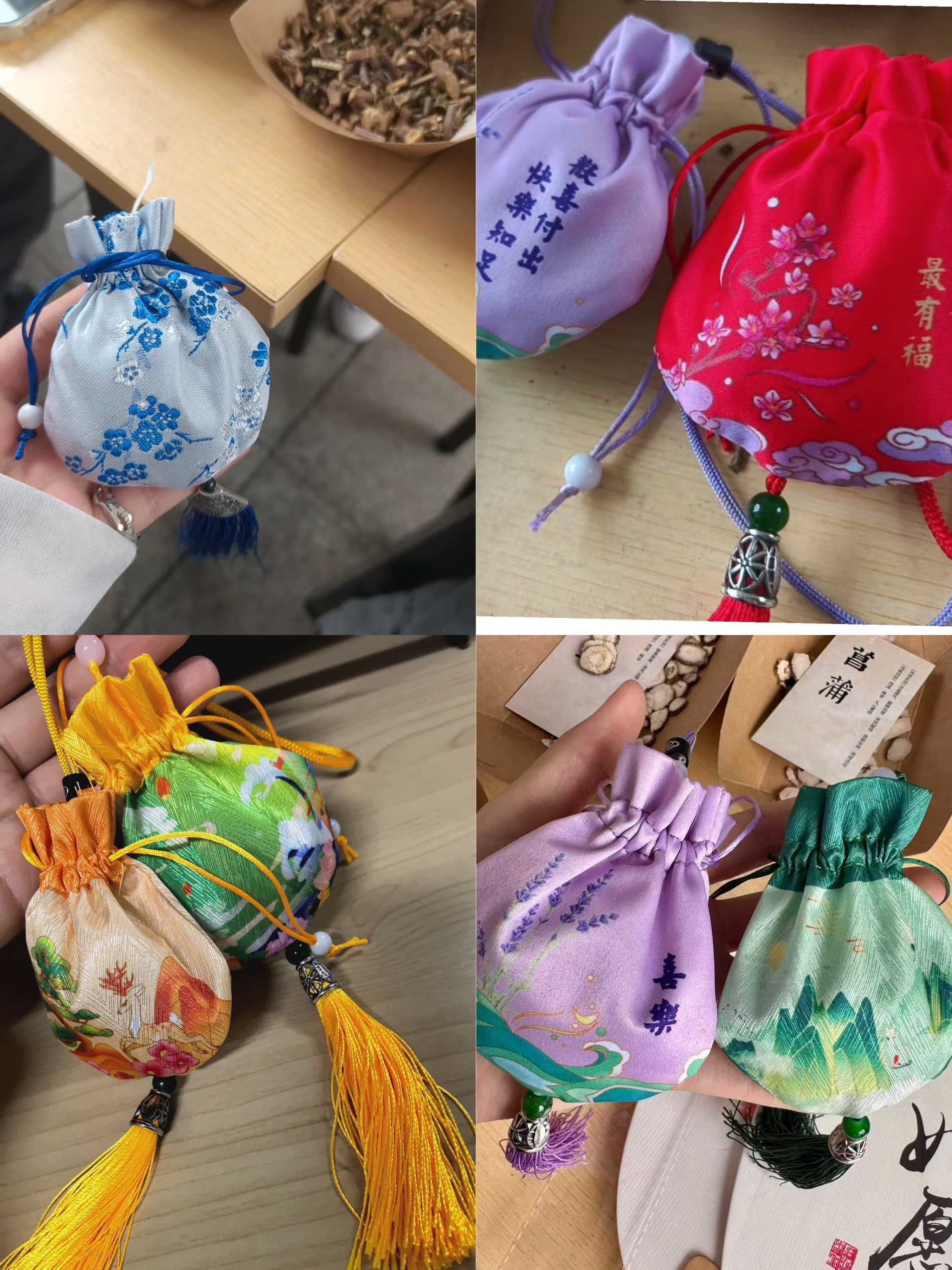 漆扇雅绘体验区人气高涨,同学们在了解工艺与纹样寓意后,现场绘制折扇,结合经典图案、专业特色与马年元素,完成后涂刷清漆,优秀作品集中展示,成为校园一道文化风景。非遗拓印小课堂上,大家在指导下完成书签、明信片制作,在动手间感受传统技艺的古朴魅力。香囊 DIY 区温馨热闹,同学们填充艾草、薰衣草等香料,制作小巧实用的香囊,寄托平安顺遂的美好祝愿。