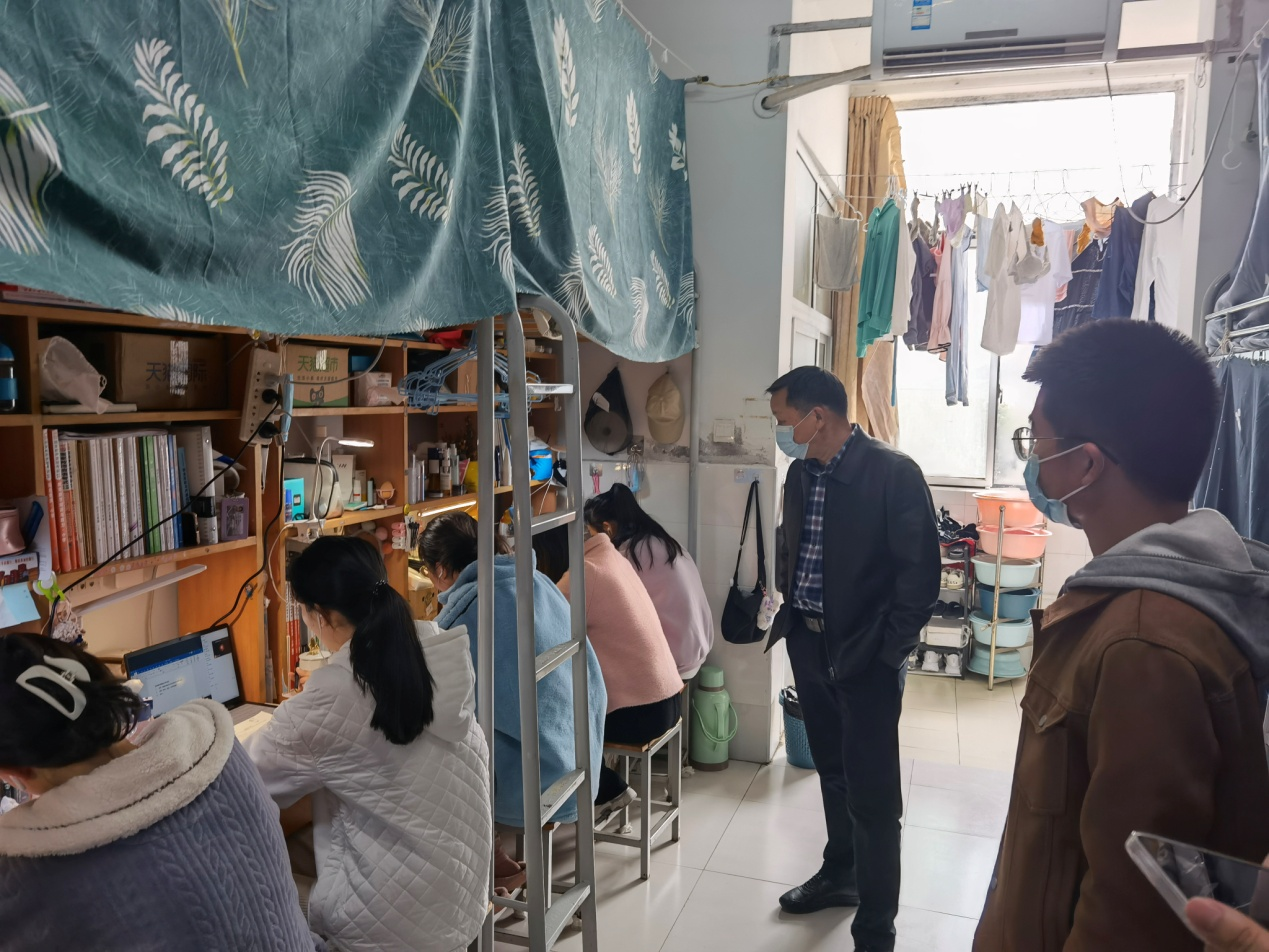 为进一步筑牢校园疫情防线,更好地了解疫情期间学生寝室卫生与线上课程的开展情况,3月18日下午,副校长侯进元赴财经学院开展宿舍检查工作,财经学院副书记、学工办副主任及全体辅导员随行。