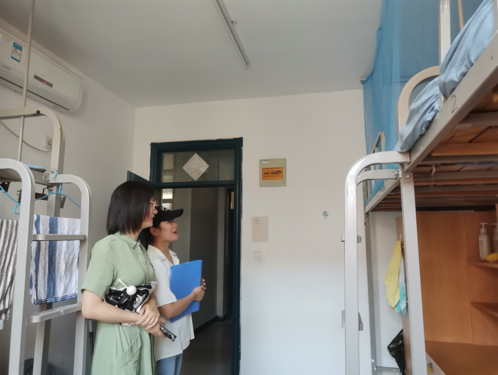 来到学生宿舍楼,谢清雅一行仔细查看了宿舍生活设施是否完备,安全事故预防和控制设备是否完善,损坏物品能否及时得到维修。走进学生宿舍,谢清雅查看了床铺、门窗、洗漱间等公寓设施,了解宿舍卫生、住宿管理、安全隐患等问题。学生宿舍情况,也将计入新生优良宿舍的评价中。