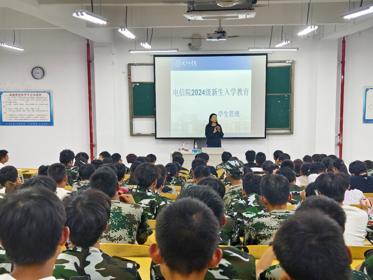 为扶正电信院新学子的大学观,强化党建引领,增强入党认知,9月23日晚,电信工程学院在郑蒲港校区开展2024级新生入学教育,电信院党总支书记杨安胜、党总支副书记马羽佳、电信院党政办主任张高桢担任主讲。