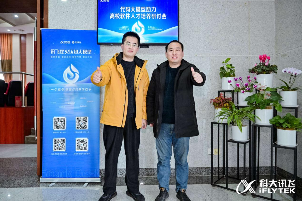 我院计算机专业教研室主任张利庭、人工智能专业教研室主任汪金涛参加了研讨会,并就科大讯飞认知大模型助力高校数字化转型与软件人才培养、大模型赋能编程教学的探索和实践、智能编程助手助力企业研发效率提升等内容与其他高校的教师开展了交流、研讨。
