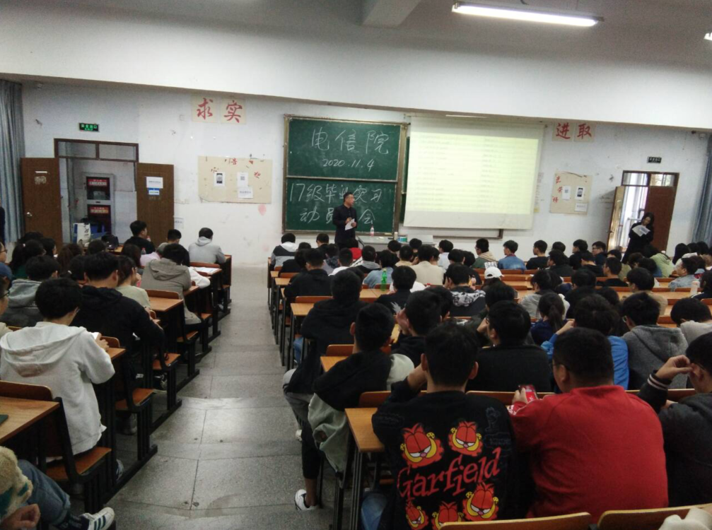 首先,院长助理倪天伟做了动员讲话。他说毕业实习是我院各专业人才培养方案里规定修读的一门集中实践教学课程,要求每位同学都要参加实习工作,毕业实习是同学们正式求职前的磨练和备战。倪老师就实习内容与形式、实习时间、离校前的实习手续办理和注意事项等对同学们做了详细的要求。