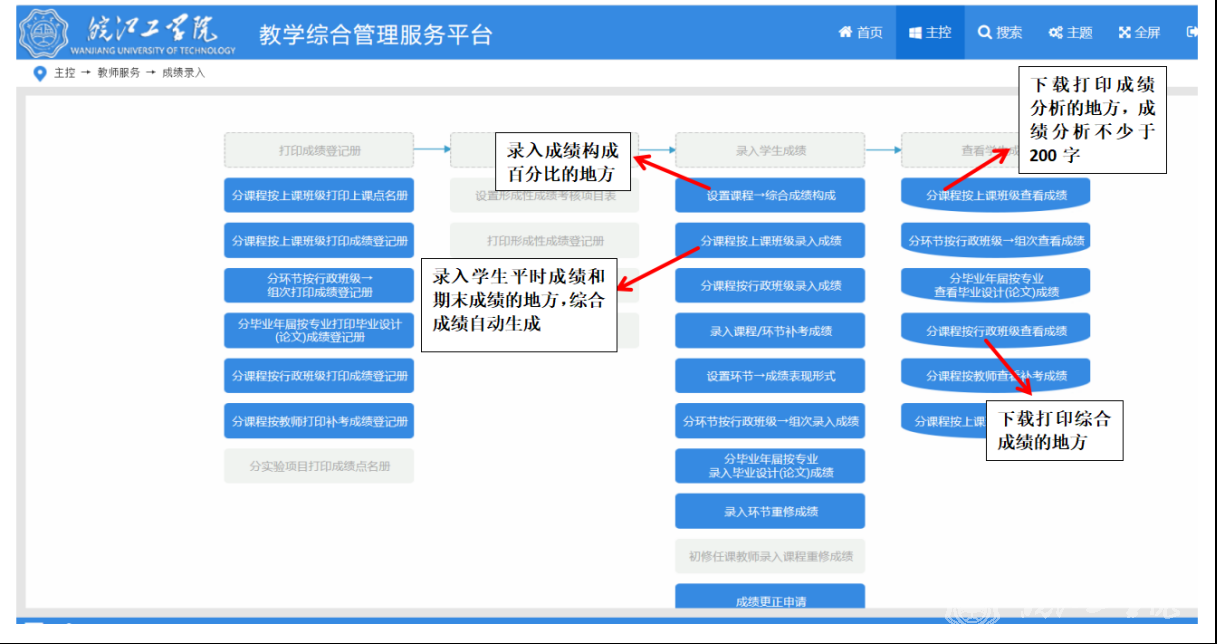 (1)成绩线上录入需准确无误,平时成绩、期末成绩、综合成绩需填写完整。