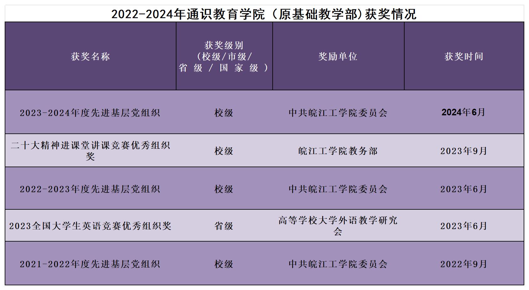 2023年通识教育学院(原基础教学部)教职工获奖情况