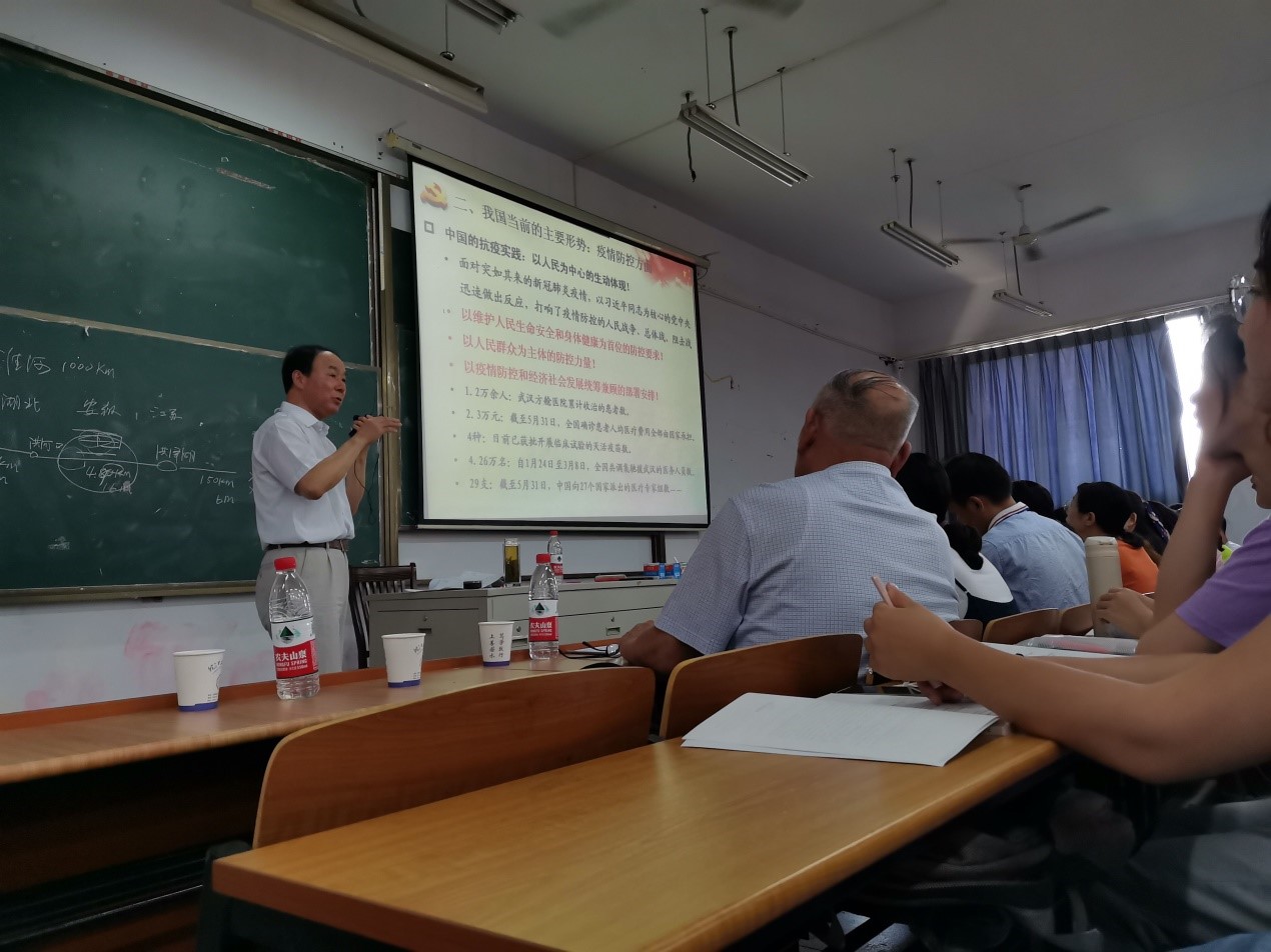 刘志祥指出,习近平总书记对安徽的考察与指导,无疑是影响深远的。总书记心系人民,以人为本,不仅在抗洪期间与抗洪一线英雄同在,也指导我们要加强基础建设、加快科技成果的转换和培育新兴产业。当前我国的疫情防控在党的领导下呈良好发展的趋势。疫情无情人有情,党的正确领导和全国人民的共同努力,终究是让这场疫情渐行渐远。不仅如此,疫苗研发的快速推进和境外输入数据的不断下降,无不彰显着中国精神与中国力量。我们高校大学生应发扬这种精神与力量,奋勇拼搏,明确当下学习之要务,将学习化作一种责任与追求。同时要主动学习,主动思考,主动讨教,从而实现知识的最大化、最优化。他勉励同学们勤学善思、注重实践,从知行合一上下功夫,充分利用好学校提供的各种实践平台,练就融入社会、服务人民的本领。