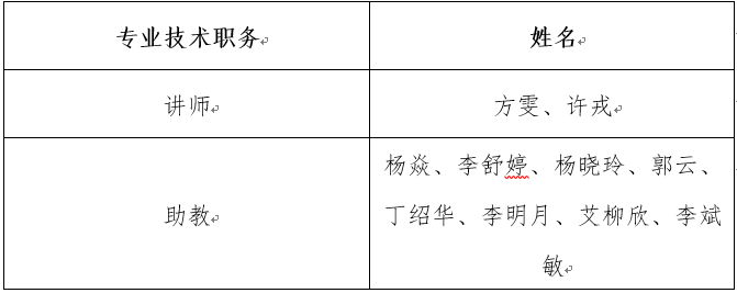 依据《关于开展2021年度beat365正版唯一官方网站专业技术资格岗位聘任工作的通知》及《河beat365正版唯一官方网站教师(含实验系列、辅导员)专业技术职务聘任管理办法(试行)》的文件要求,经教师本人申请,管理学院进行审核与推荐,现将2021年度新晋升专业技术资格人员名单公示如下(排名不分先后):