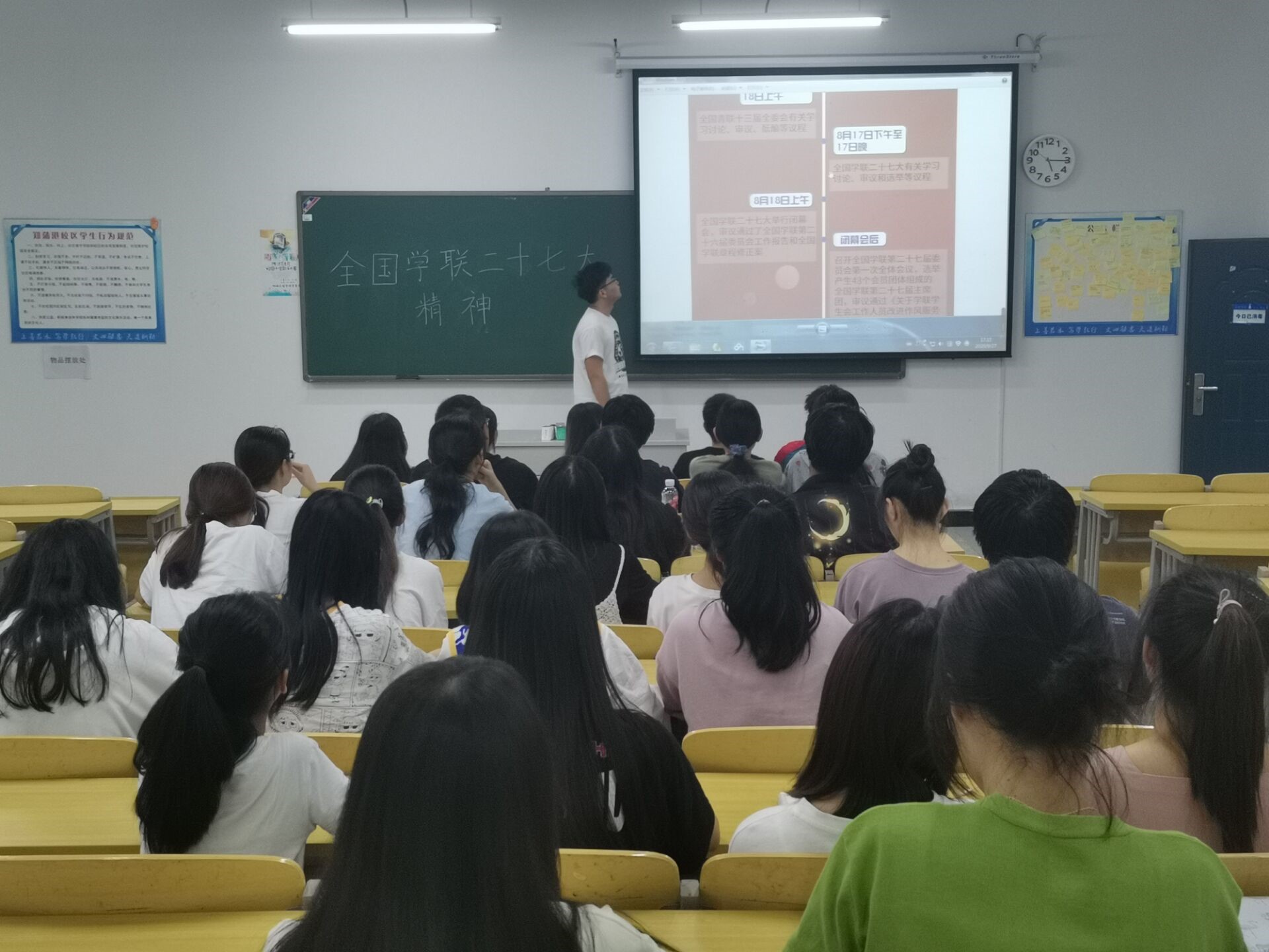 9月27日下午,管理学院以学习“习近平总书记致全国学联二十七大的贺信和党中央致辞精神”为主题,在郑蒲港校区C206教室举办了基层团学活动。