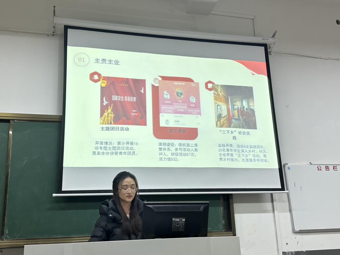会上,各基层团支部书记依次进行现场述职,围绕思想引领、组织建设、团员管理、活动开展、志愿服务与学风建设等重点工作,结合支部实际作了详细汇报。大家既亮出“成绩单”:展示了主题团日创新、团员先锋作用发挥、志愿服务品牌建设等方面的扎实成果;也直面“问题清单”:坦诚剖析了组织凝聚力、活动针对性、教育形式等方面存在的不足,并结合支部特点提出了具体的改进方向与工作计划。