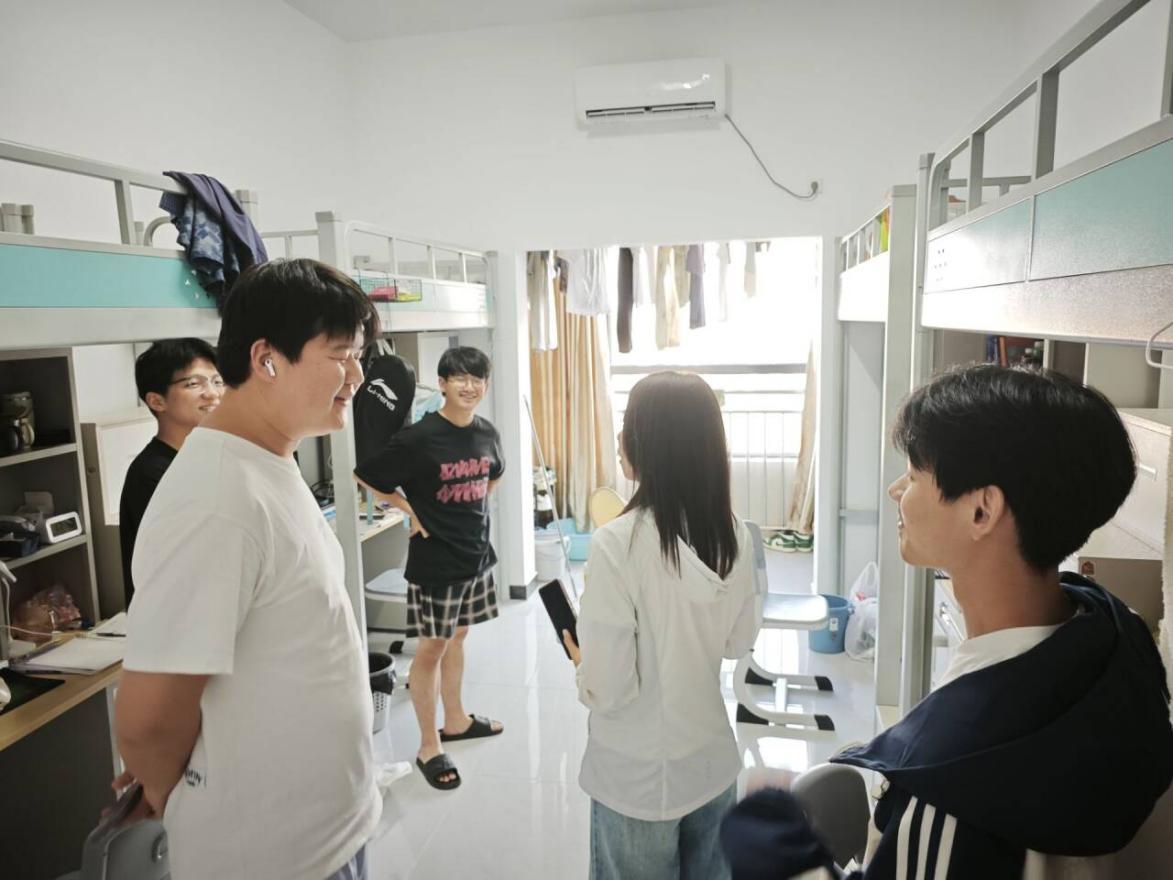 暖心交流,传递学院关怀。辅导员与同学们亲切交谈,细致询问他们的入住感受、假期生活及新学期规划。尤其是对于刚入住霍里山校区的学生,重点询问了行李搬运、校园生活适应等问题,给予了耐心的解答。