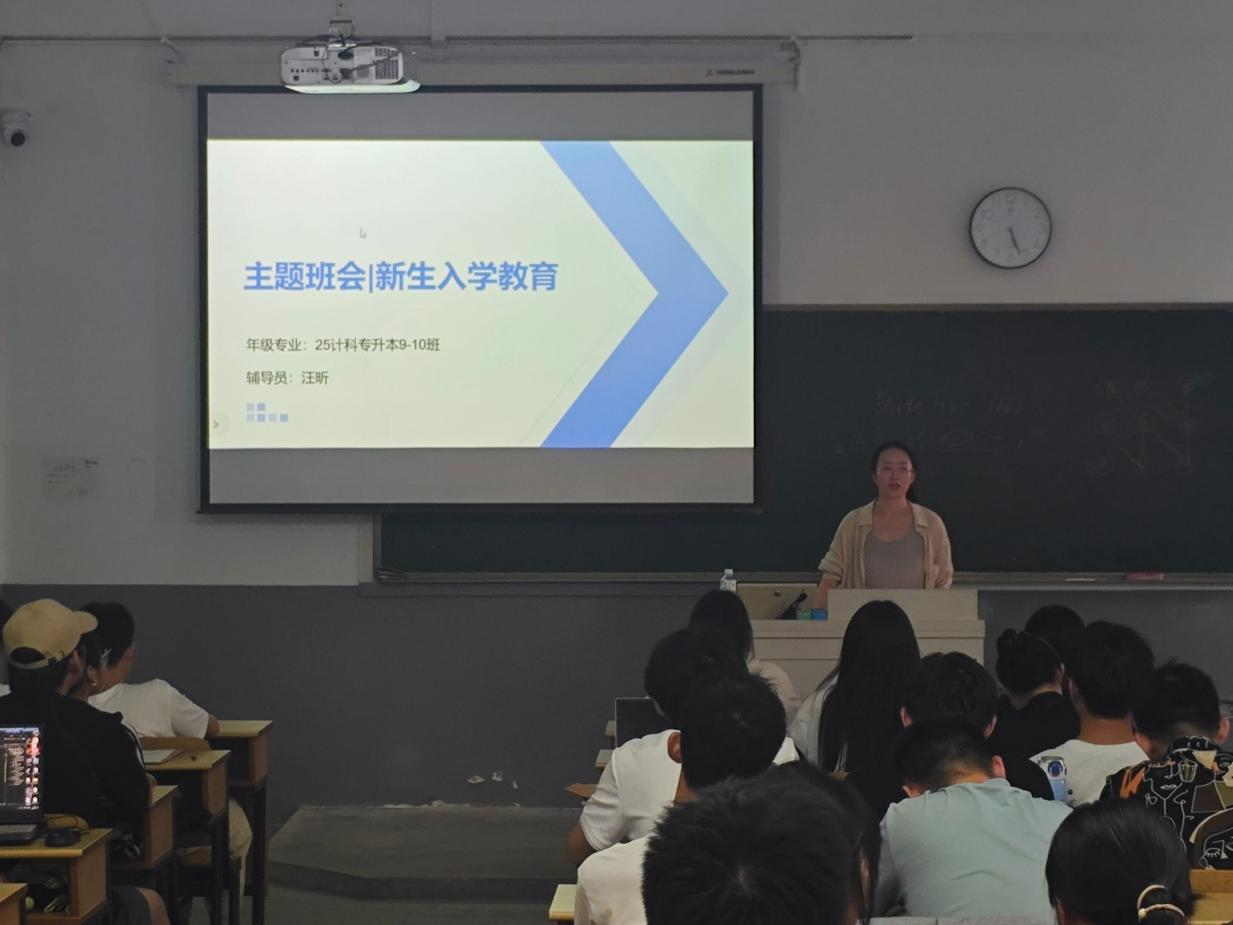 为帮助专升本新生尽快适应本科阶段的学习生活,9月1日下午,计算机与人工智能学院在笃学楼(南)103和笃学楼(北)103召开了专升本入学教育主题班会。班会围绕“适应·融合·成长·展望”主题展开,由辅导员杨红和汪昕分别主持,2025级计算机专升本专业全体学生参加。