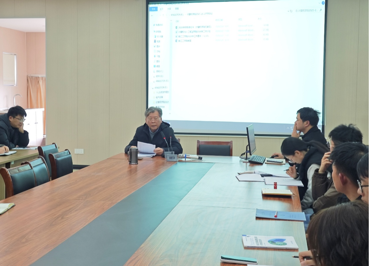胡徐胜院长通报了学校2026年工作要点,传达了2026年春中层干部会议精神,结合学院实际对2026年学院重点工作进行了部署。胡院长强调,要扎实推进计算机科学与技术专业的工程教育认证工作,严格按照认证标准完善各项材料;要统筹谋划微专业的建设与运行管理,确保教学质量和效果;同时,要着力推进教师科研能力建设,逐步提高学院科技工作水平;要积极推动各类学科竞赛的组织与参与,力争取得更好成绩。胡院长要求全体教职工深刻领会学校会议精神,凝聚共识、汇聚合力、创新举措、争创品牌,高质量完成学院年度重点工作。