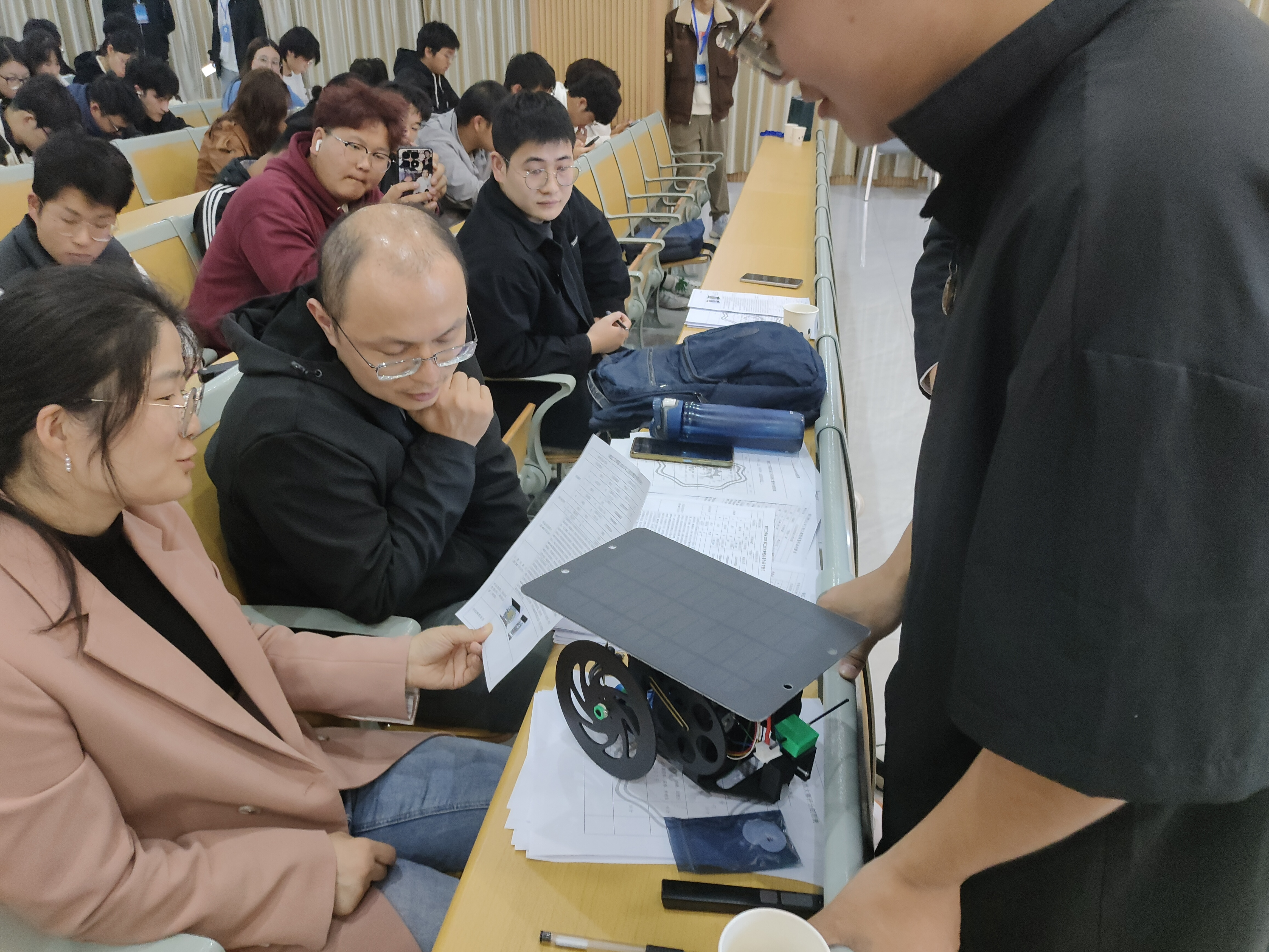 本次活动的主题为“交叉融合工程创新育新质,立德树人强国建设勇担当”,出席本次大赛的评审老师有双创院院长助理陶彬彬老师,机械工程教研室主任陈田老师,机械工程专业老师王展老师等。