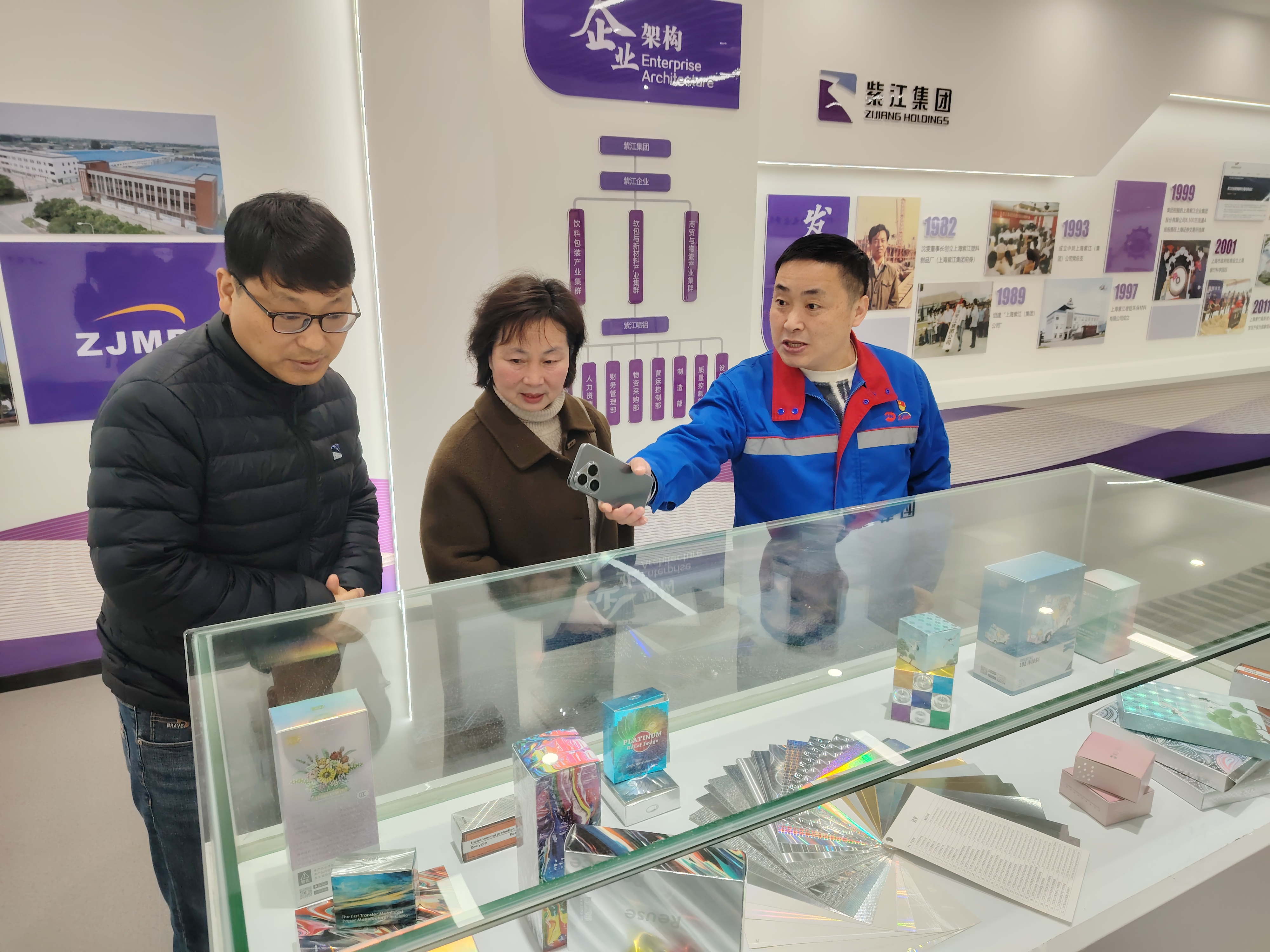 交流伊始,姚五龙对学院一行的到来表示热烈欢迎,他详细介绍了紫江喷铝的发展布局、核心业务及人才需求情况。据悉,安徽紫江喷铝环保材料有限公司主要生产各种转移膜及复合膜、真空喷铝包装材料、高档镭射喷铝纸、金属材料及制品等,是安徽省高新技术企业、安徽省“专精特”企业。当前,企业正处于高质量发展阶段,在设计研发、生产管理、高分子材料等领域存在人才需求,尤其青睐兼具专业素养与实践能力的复合型人才,与学院相关专业人才培养方向有一定的契合度。