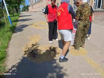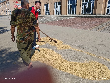 秋收似乎开始,路边有人在晒着稻谷,随着实践团队的加入,晒谷变为了一件非常迅速的事情,但是又从农民伯伯的简单交谈中知道了这些稻谷就是那一寸小小田地里全部收入,里面不是我们吃的那种颗颗饱满,甚至感觉有的谷穗是一粒一粒从田里面捡的,脏兮兮的,但是映入眼帘的是秋收的喜悦,队员们面面相觑,了解到粮食的来之不易。