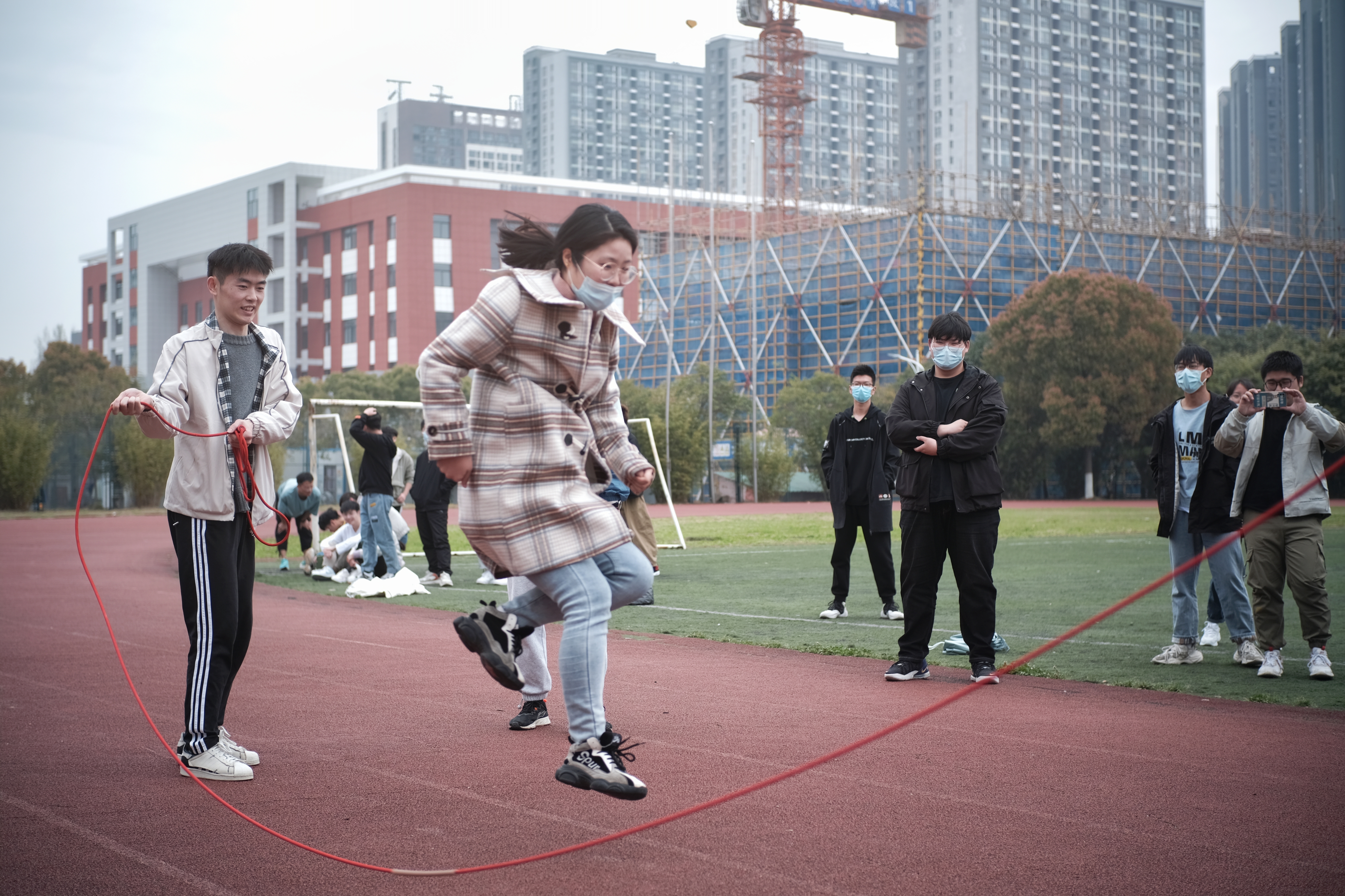本次跳大绳比赛为集体项目。共有6支队伍参加,每支参赛队共计10名队员(2名为摇绳员,另外8名同学为跳绳队员)参加。比赛时间为三分钟,在规定时间内按照跳绳的数量为最后的总成绩来排名。所有参赛队伍抽签进行分组后,按顺序进行比赛。各个代表队显然是有备而来,摇绳和跳绳的队员配合相当默契,几乎没有磕绊,看得场外观众惊叹不已,不约而同地为其数着次数,宛若自己就是那身轻如燕的好手。经过一个多小时的激烈角逐,最终获奖的专业队伍分别是:一等奖,19机械;二等奖,19车辆;三等奖,20新能源。最后,老师们也参与了进去,春日的操场上一片其乐融融的景象。在为获奖者颁发证书并拍照留念后,此次比赛圆满落幕。