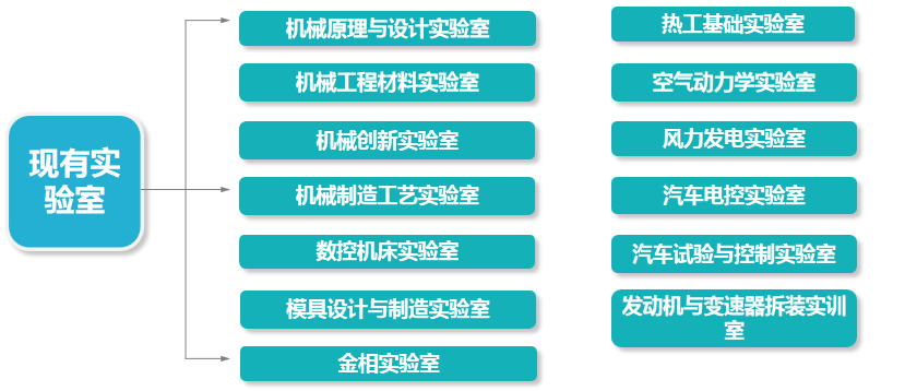 学院现有一个智能制造工程实训中心,另外有机械制造工艺实验室、汽车底盘实验室、汽车发动机与变速器拆装实验室、液压与气动实验室、汽车电器与电控实验室、机械原理与设计实验室、互换性与测量技术实验室、模具设计与制造实验室、汽车试验实验室、汽车整车实验室、汽车虚拟仿真实验室等11个专业实验室。
