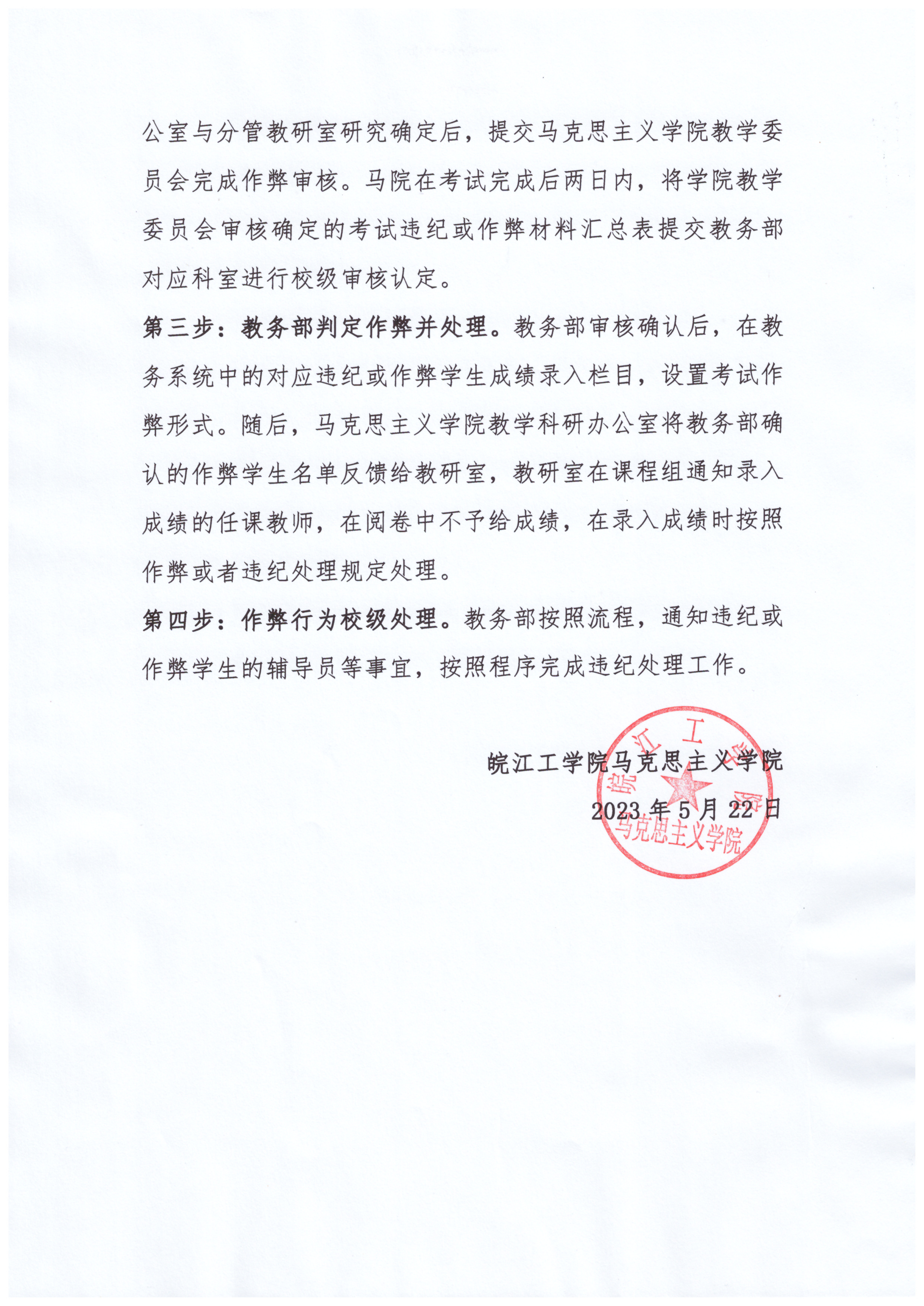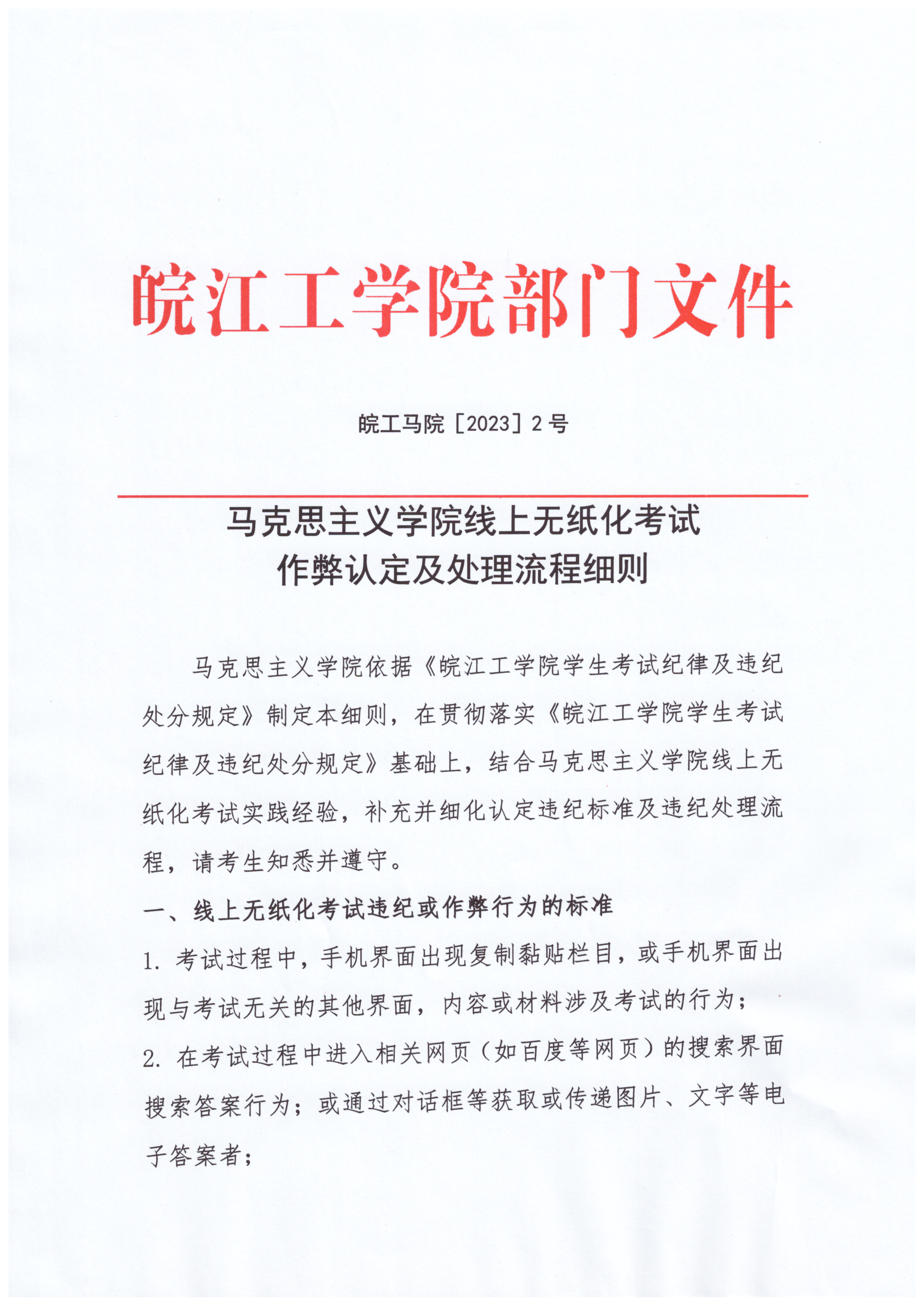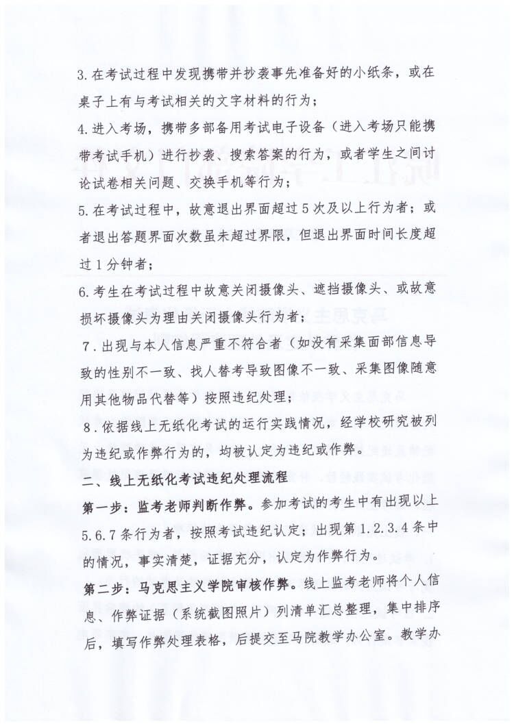 马克思主义学院线上无纸化考试作弊认定及处理流程细则