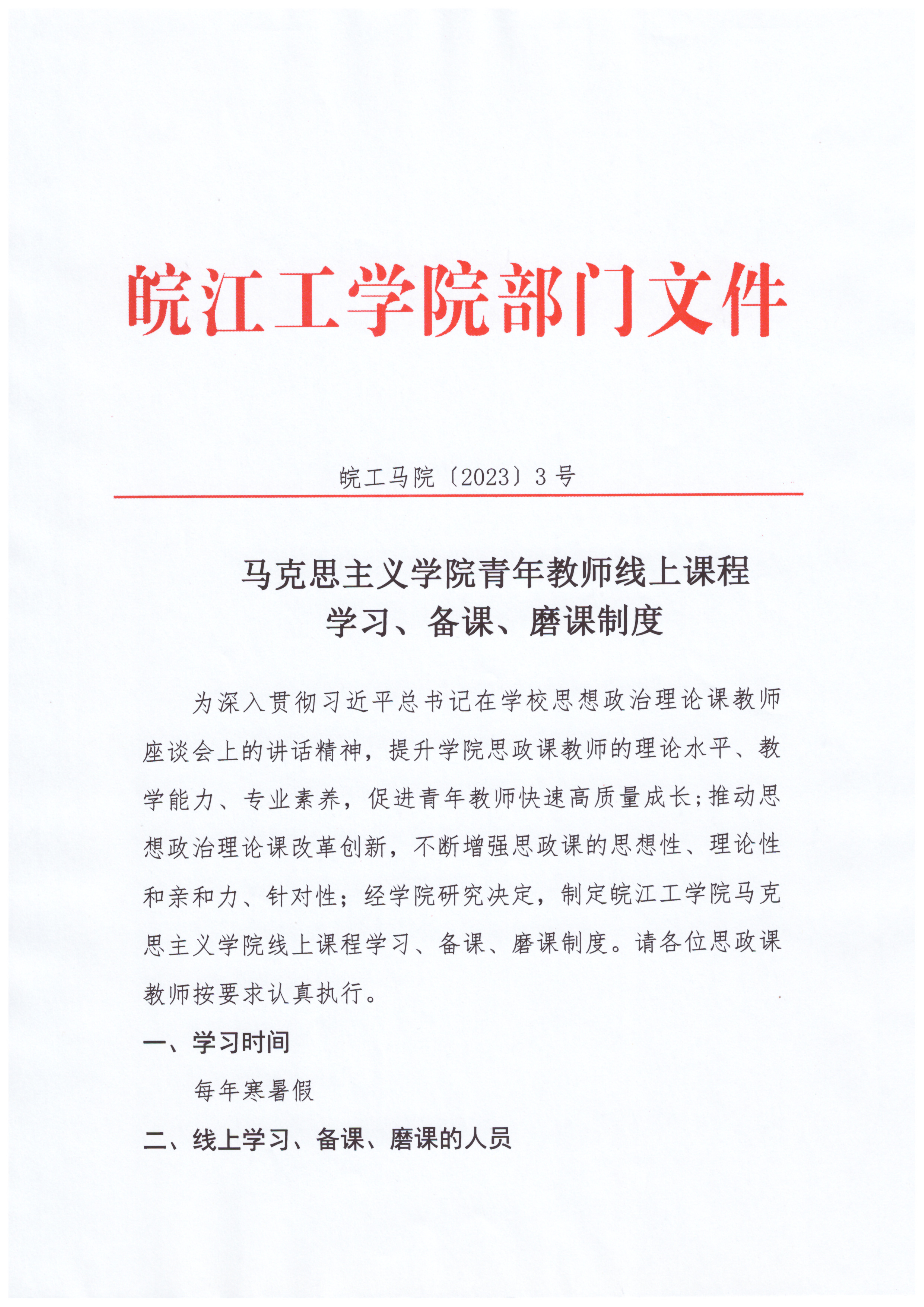 马克思主义学院青年教师线上课程 学习、备课、磨课制度