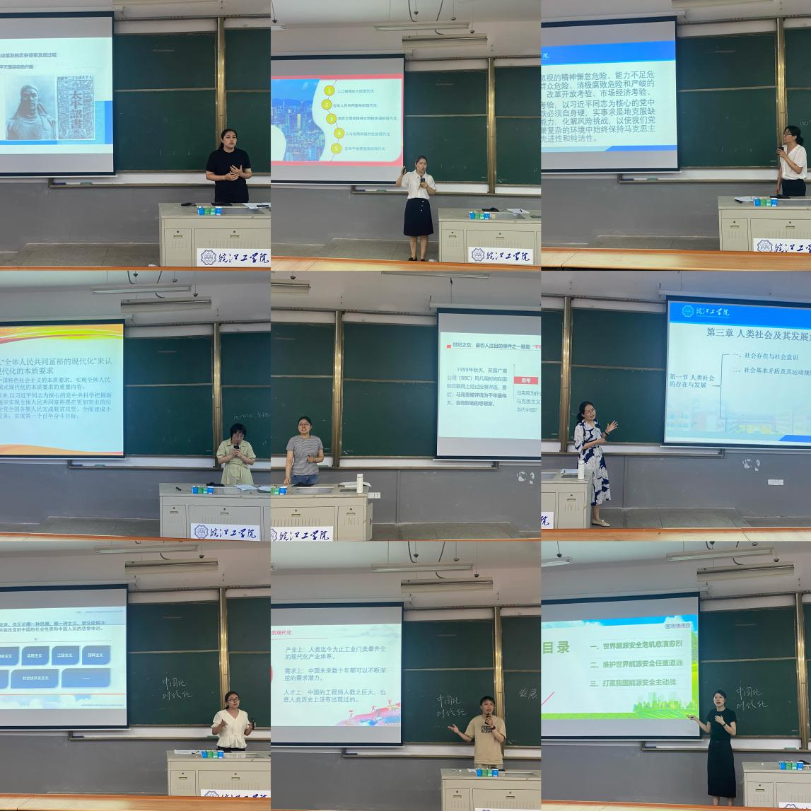 为深入学习贯彻党的二十大精神,推进党的二十大精神进教材、进课堂、进头脑。2023年6月28日,马克思主义学院在B308教室顺利开展了“二十大精神进课堂”教师讲课比赛活动。比赛邀请了安徽工业大学马克思主义学院毛泽东思想和中国特色社会主义理论体系概论教研室主任、安徽工业大学学术委员会副主任阮超群教授作为评委,教研室主任带头,全体教师参加比赛。
