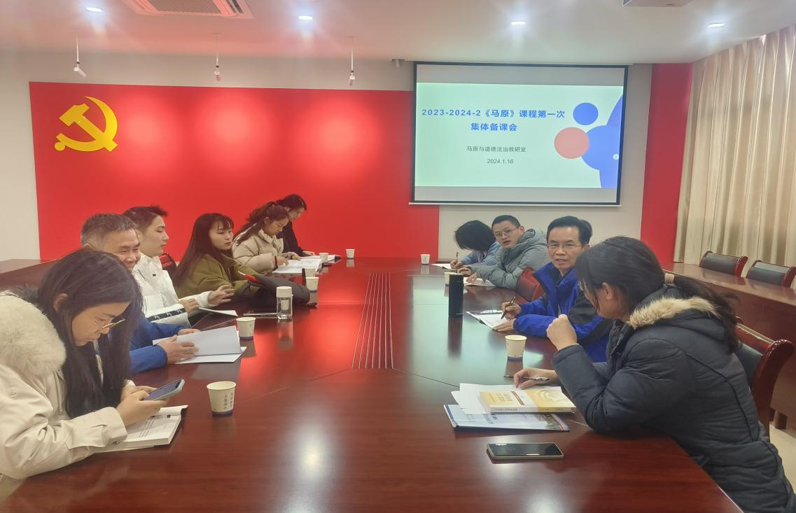 1月16日,马原与道德法治教研室在党员会议室召开2023-2024学年第2学期《马克思主义基本原理》课程第一次集体备课会。备课会由教研室主任赵萍主持,课程组全体任课教师参加。