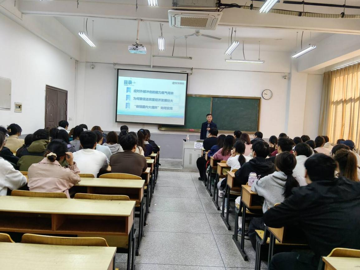 丁家云、孙良以“正确认识中国经济热点问题”为主题,进行了系统讲授。课程聚焦当前社会普遍关注的经济领域重点难点,分为三个部分层层深入。在第一部分“应对外部冲击的能力底气何来?”中,深入剖析了中国经济在面对复杂严峻国际环境时所展现出的强大韧性与抗风险能力,系统阐述经济长期向好的支撑条件和基本趋势没有变;第二部分“为何要促进民营经济发展壮大?”重点解读了民营经济在推动经济增长、促进创新、增加就业、改善民生等方面不可替代的重要作用。第三部分“做强国内大循环如何实现?”则围绕构建新发展格局的关键任务,探讨了如何有效夯实国内大循环的主体地位,促进国内国际双循环相互促进,从而巩固和增强经济回升向好态势。