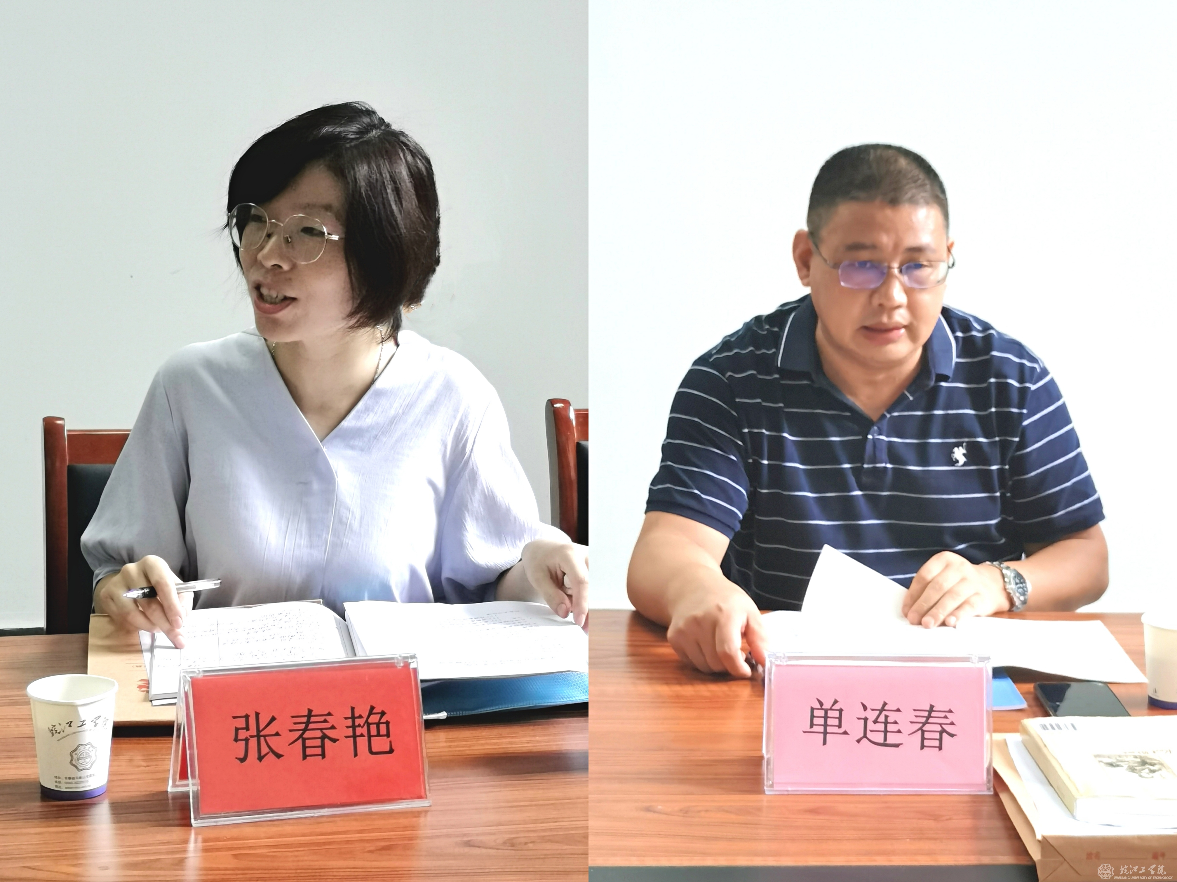 形策课程组组负责人单连春教授,纲要课程组张春艳副教授就形策、纲要两门课程的教学大纲、课件等撰写等准备情况进行了汇报。会上,闫晶就外聘专家的后勤服务、开学教学检查、上学期试卷提交归档等事务进行安排。